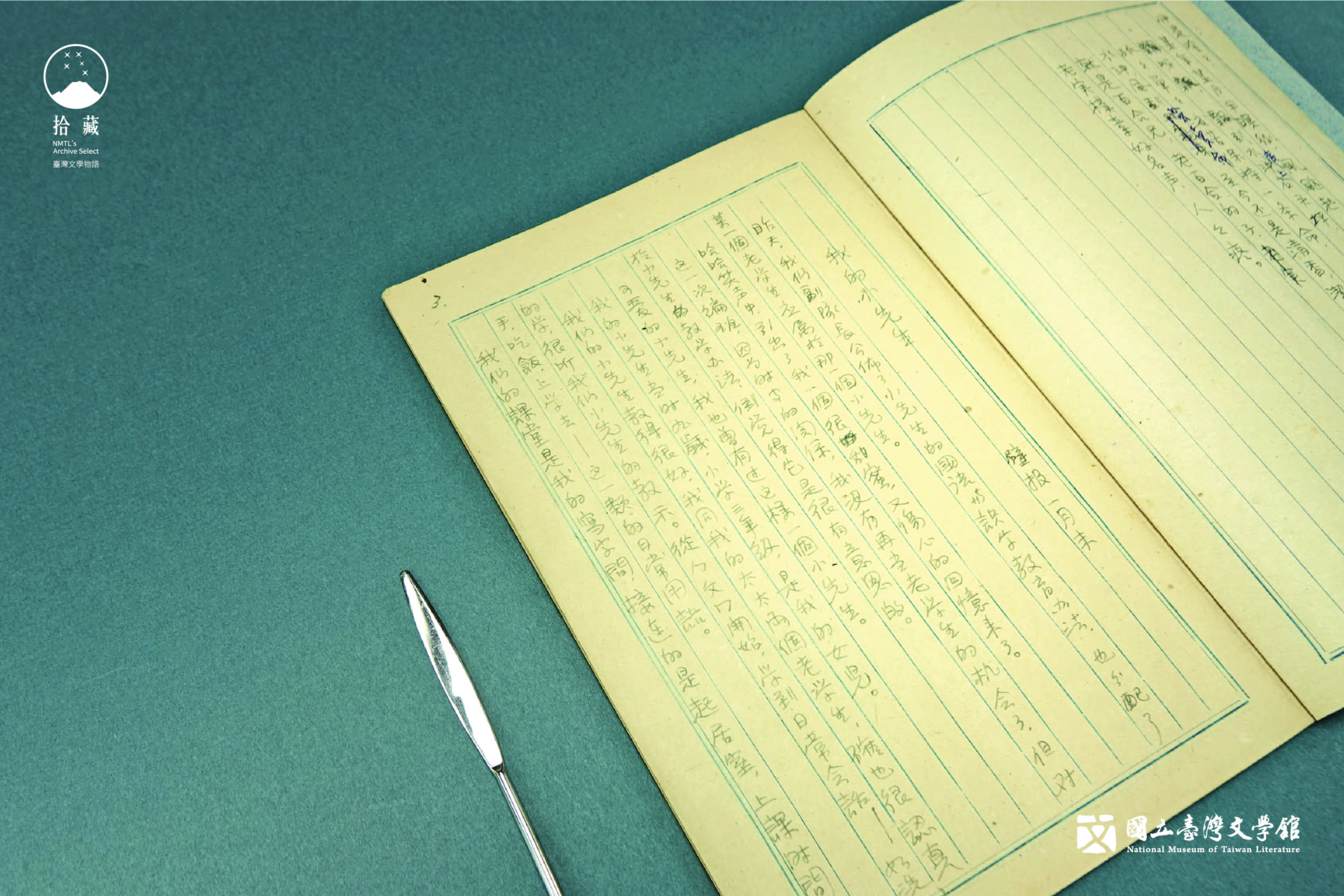 楊逵手底下是「新生筆記簿」,簿子上剛寫好的稿子預計刊登在新生訓導處發行的《新生活壁報》一月號。