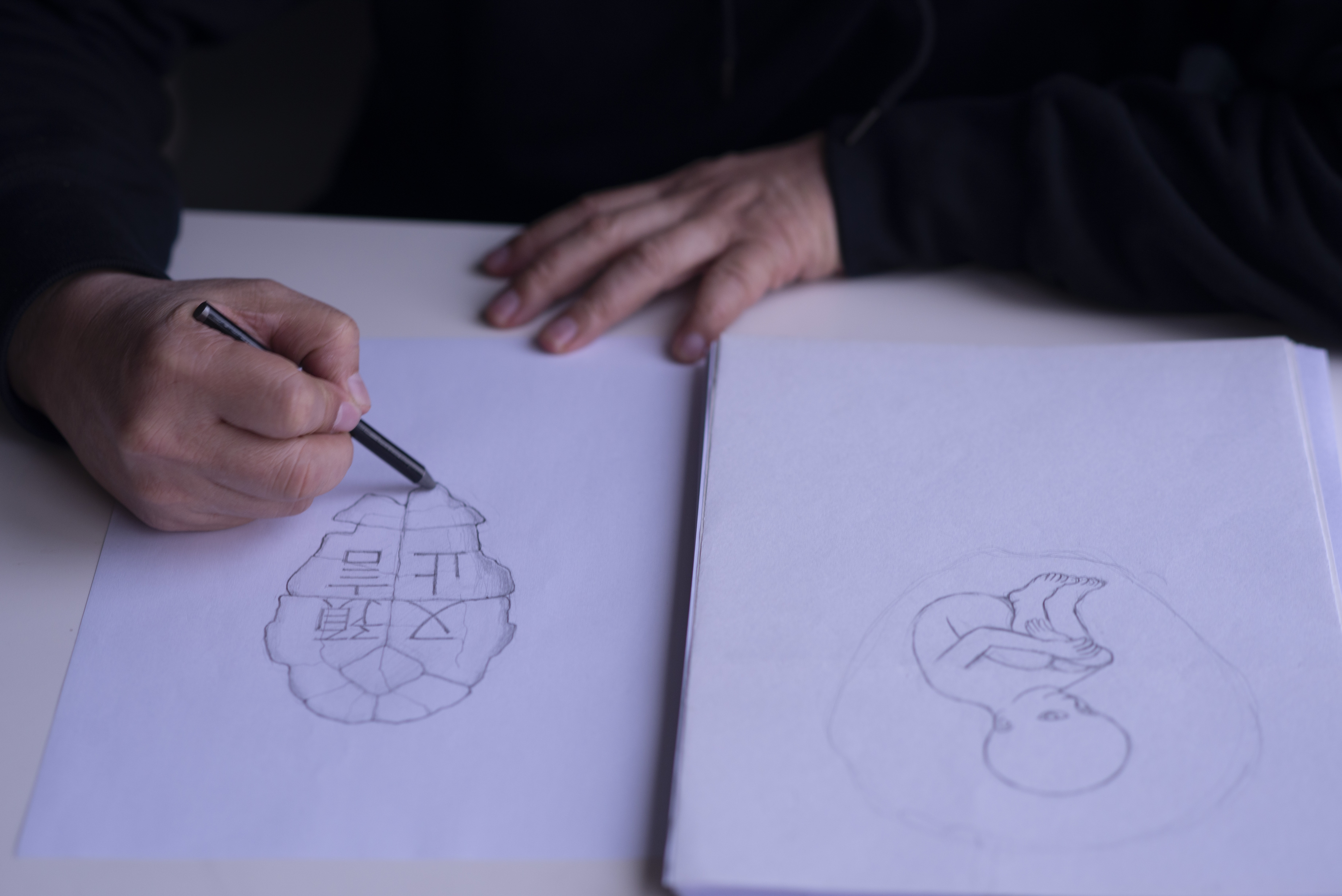 目前最接近完成的有3本書,包含故事雲計畫中的《圖書館無伴奏》、《荒涼糖果店》中提到的《預言又止》、以及比較生活化的《個人之島》。他邊寫邊手繪書封,像是《預言又止》就畫了古代占卜用的龜甲。