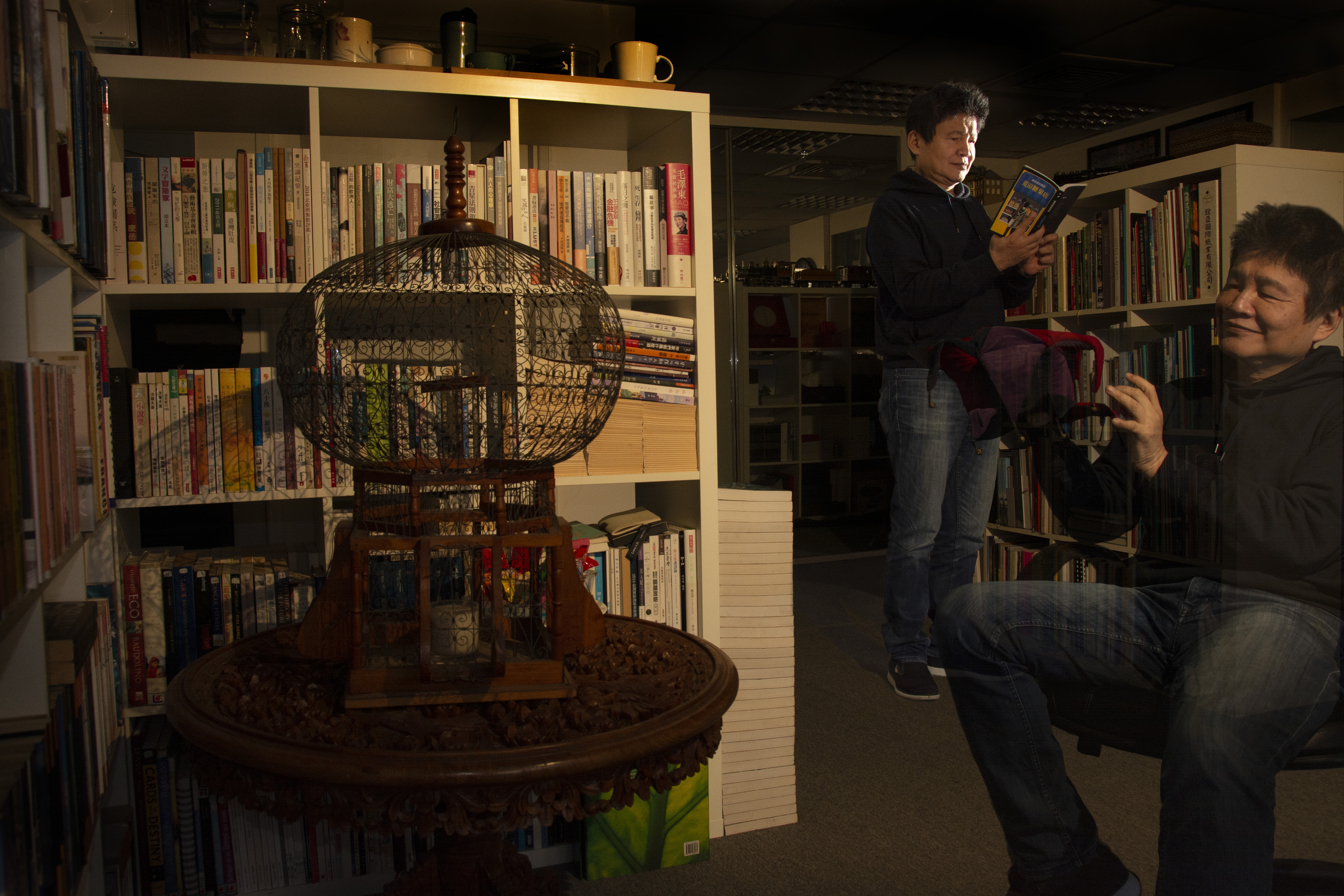工作室、家裡滿滿是書,讓家人都快受不了,他幽默表示,「以前是單身漢,現在地盤節節敗退,是全家最沒地位的。」他最近在讀和茶有關的書,一面準備《小王子》的講座,還想要整理自己的詩學。