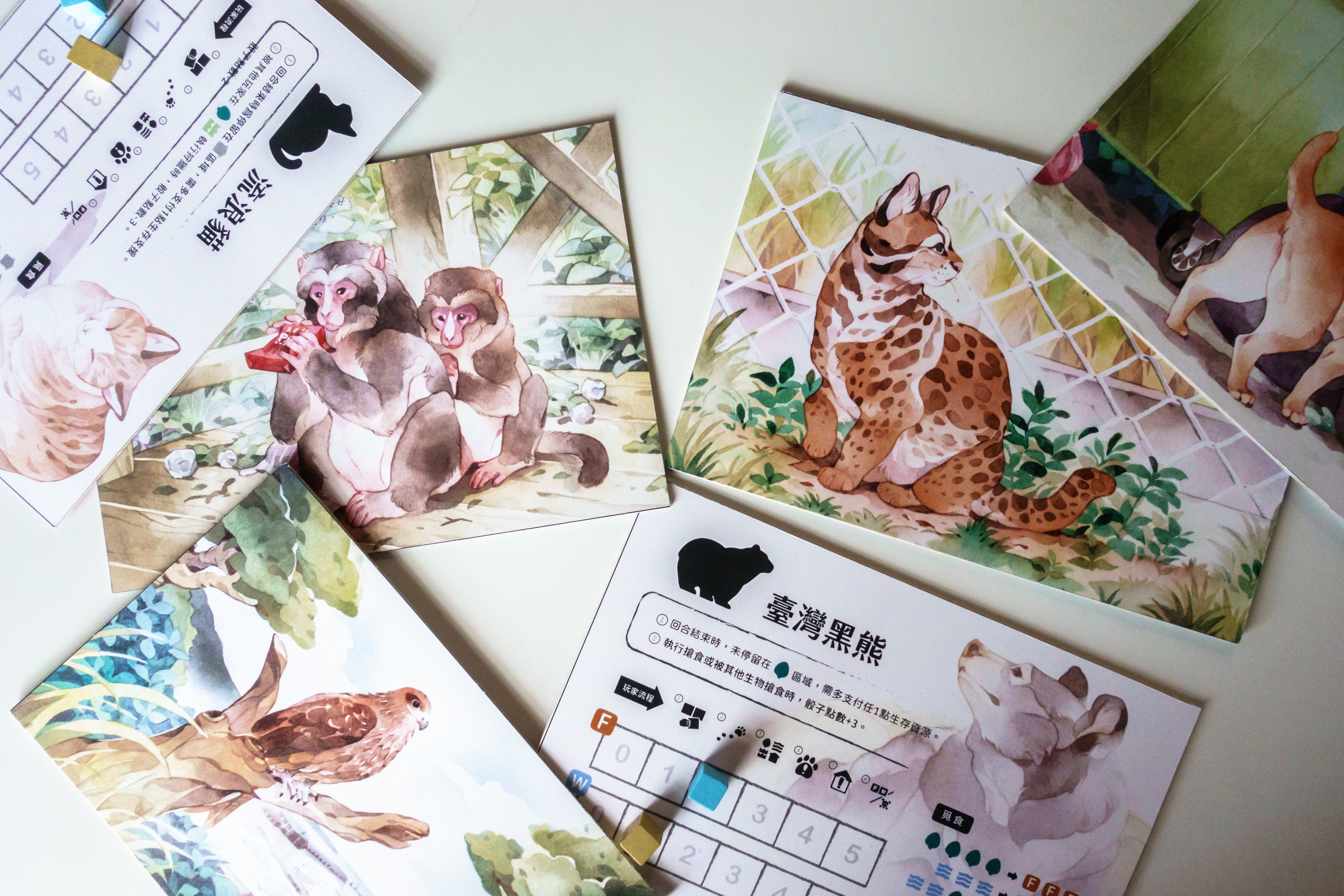 飆飆跟上動物們的腳步提筆入隊。沒想到最謎樣的困境居然現身於此。「我人生的第一隻蝴蝶就在這兒了。」蝴蝶恐懼症的她,指著遊戲卡上頭栩栩如生的大白斑蝶說道。蝴蝶角色的現身一舉震撼飆飆,她只好半捂著雙眼,努力參考小小、模糊的真實圖片進行創作。原來,除了黑熊、石虎、猴子、貓、狗、鷹六隻陸棲動物,蝴蝶與海豚兩個角色,都是經過多次試玩後才加入的新夥伴,雖然遊戲主機制並不會因角色變動而有所影響,然而每一種生物的生存條件在食物鏈中區分得很清楚,因應其生存條件而設定出的遊戲數值,其合理與真實性,是這款桌遊期待能提供給玩家最身歷其境的體驗。「舉例來說,臺灣黑熊就是食物鏈中的王者、臺灣最大的陸棲動物,牠搶不輸;而海豚則是常出現在水污染、棲地破壞等報導中的悲情動物,玩的時候你也可以深深感受到牠的悲情——只能在有水的地方移動,覓食困難,也因此牠的生存變得很難去定義。」傑森分享道。