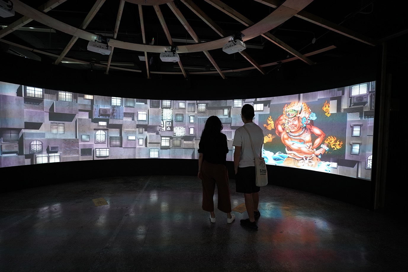 原金國際《妖市蜃樓》,透過偵測觀者走位,讓隱身城市的妖怪一一現身。