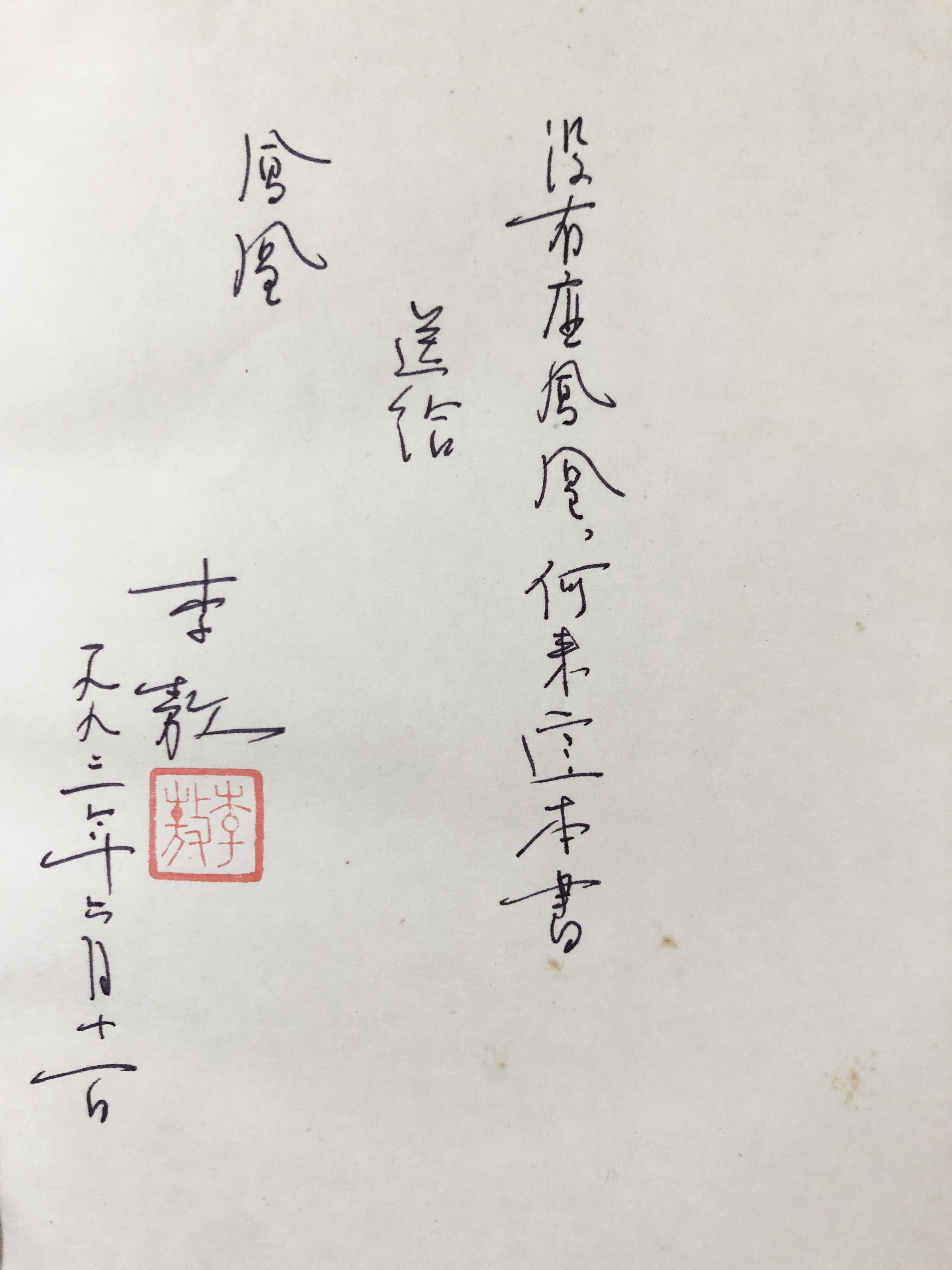 對照簽贈年月日的1993年(也是出版年),清楚說明著:我編的六冊《李敖語錄》出版在此書之前。1989年先印臺灣版,後來有香港版:兩地開本大小、設計風格不同,銷路都不差。聽說李敖作品在大陸是禁書,果真如此,這部漏網之魚加李敖親簽,只怕水漲船高已然身價不凡。