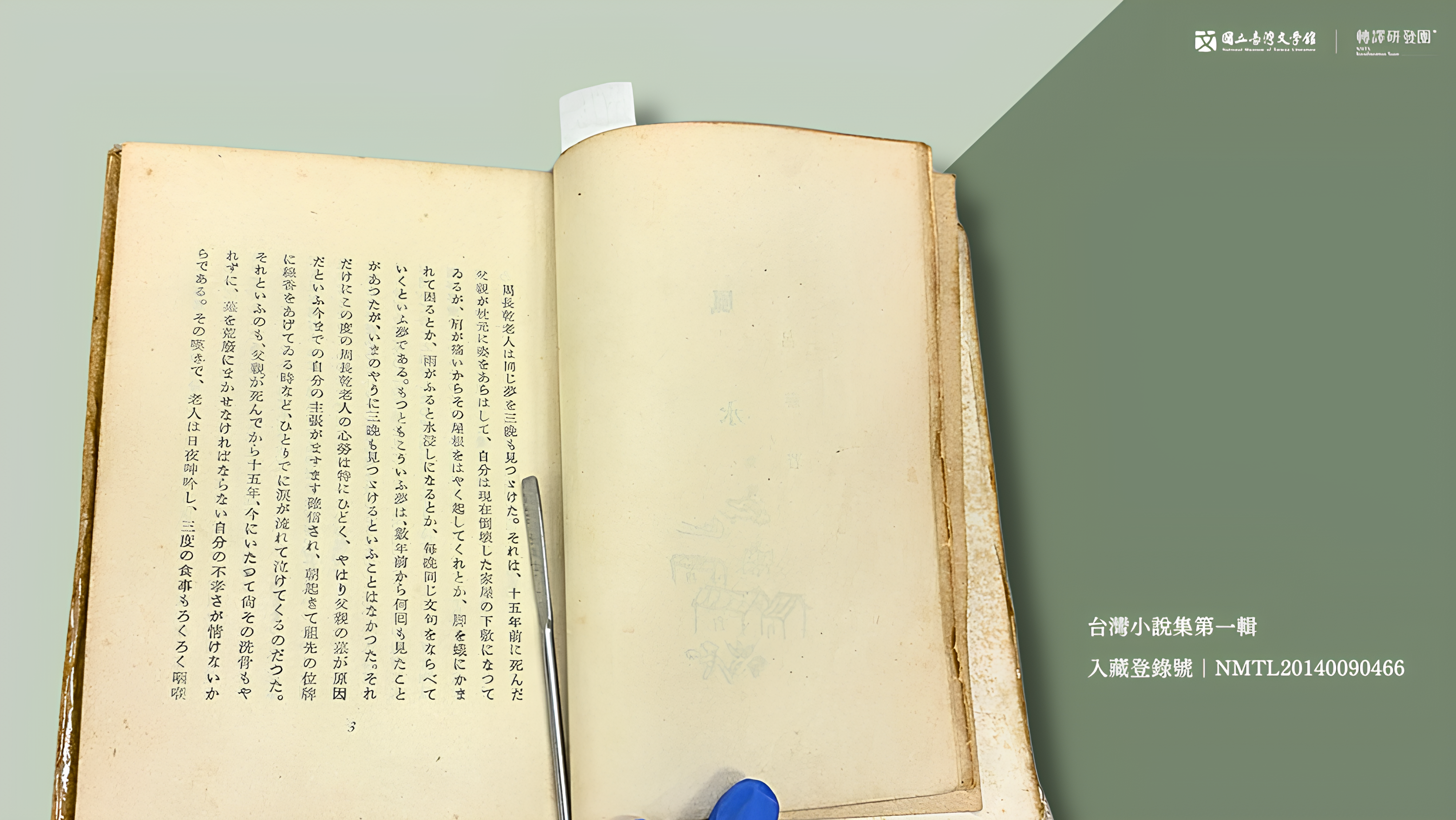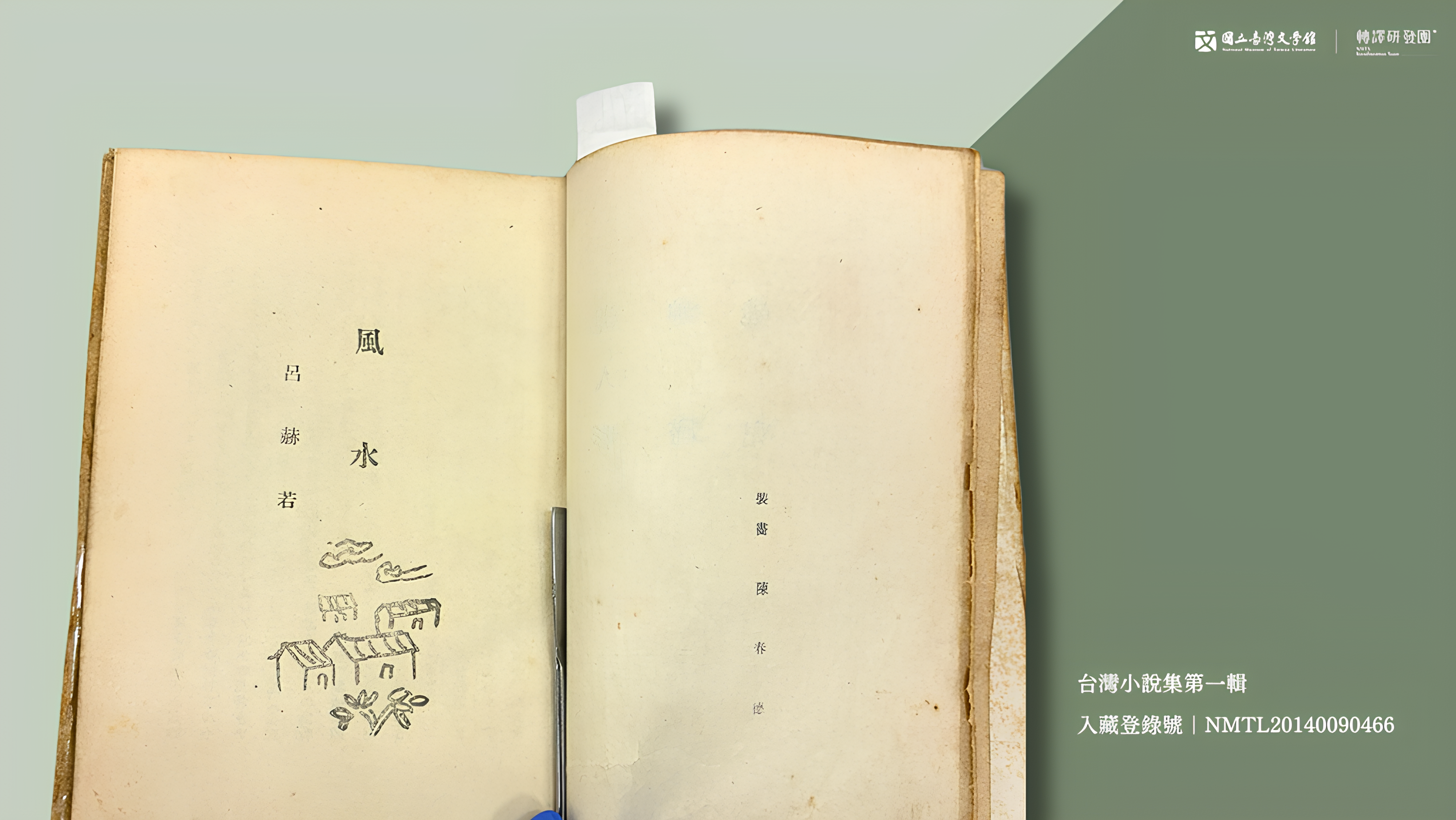 昭和18年出版的《台灣小說集第一輯》,本書內收錄呂赫若〈風水〉、王昶雄〈奔流〉、龍瑛宗〈知幸福〉、楊逵〈泥人行〉、張文環〈媳婦〉、〈迷兒〉等作。(藏品/王昶雄家屬提供,圖/國立臺灣文學館)