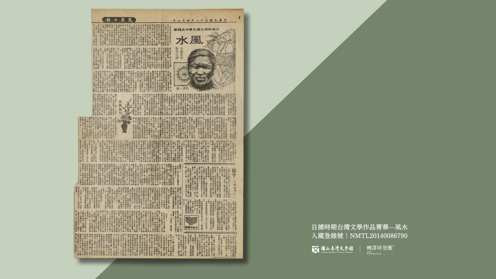 1979年由《民眾日報》刊載的〈日據時期台灣文學作品菁華—風水〉,譯者為鄭清文。(藏品/李魁賢提供,圖/國立臺灣文學館)