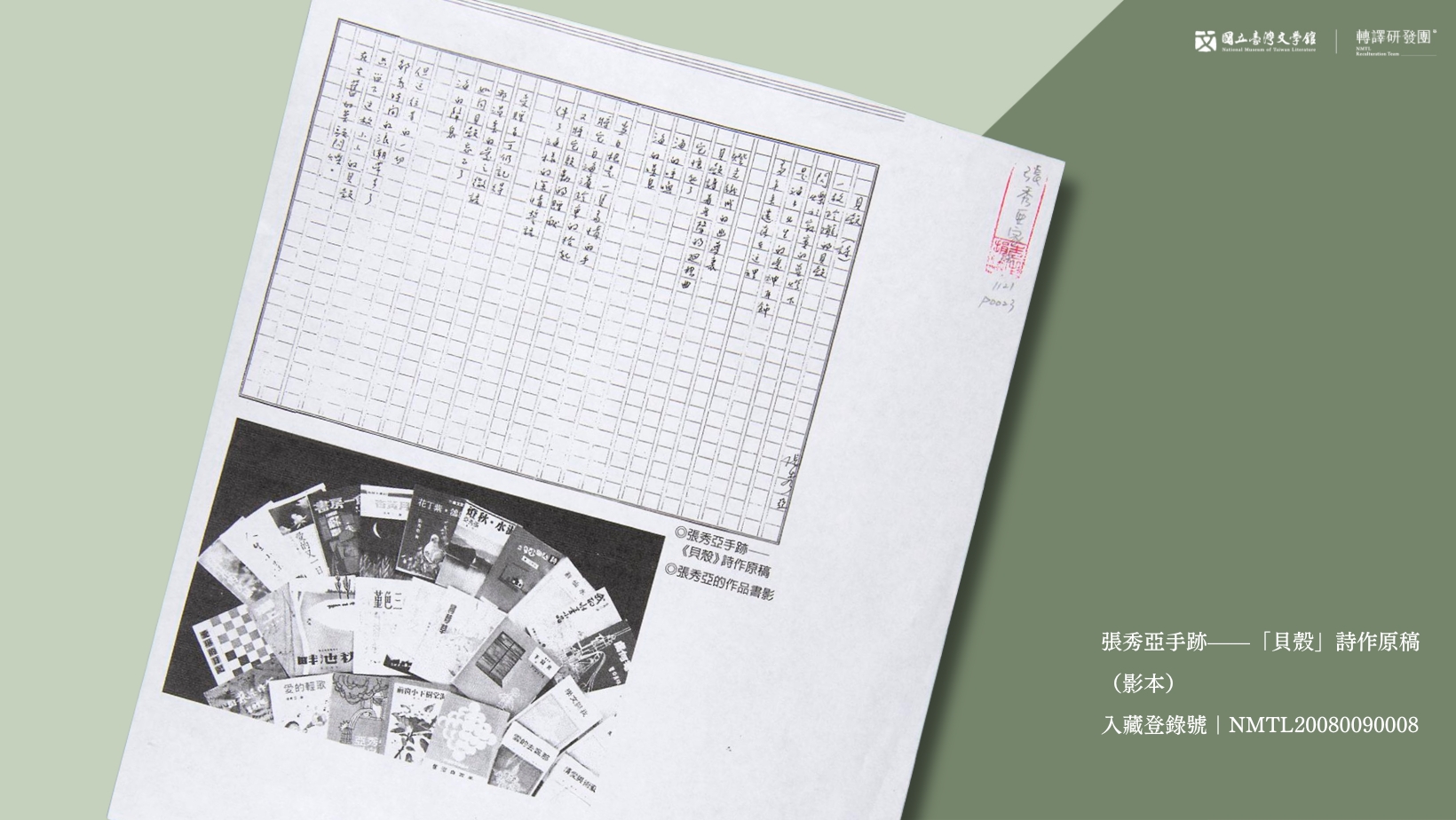張秀亞手跡——「貝殼」詩作原稿(影本)。(藏品/張秀亞家屬捐贈,圖/國立臺灣文學館)