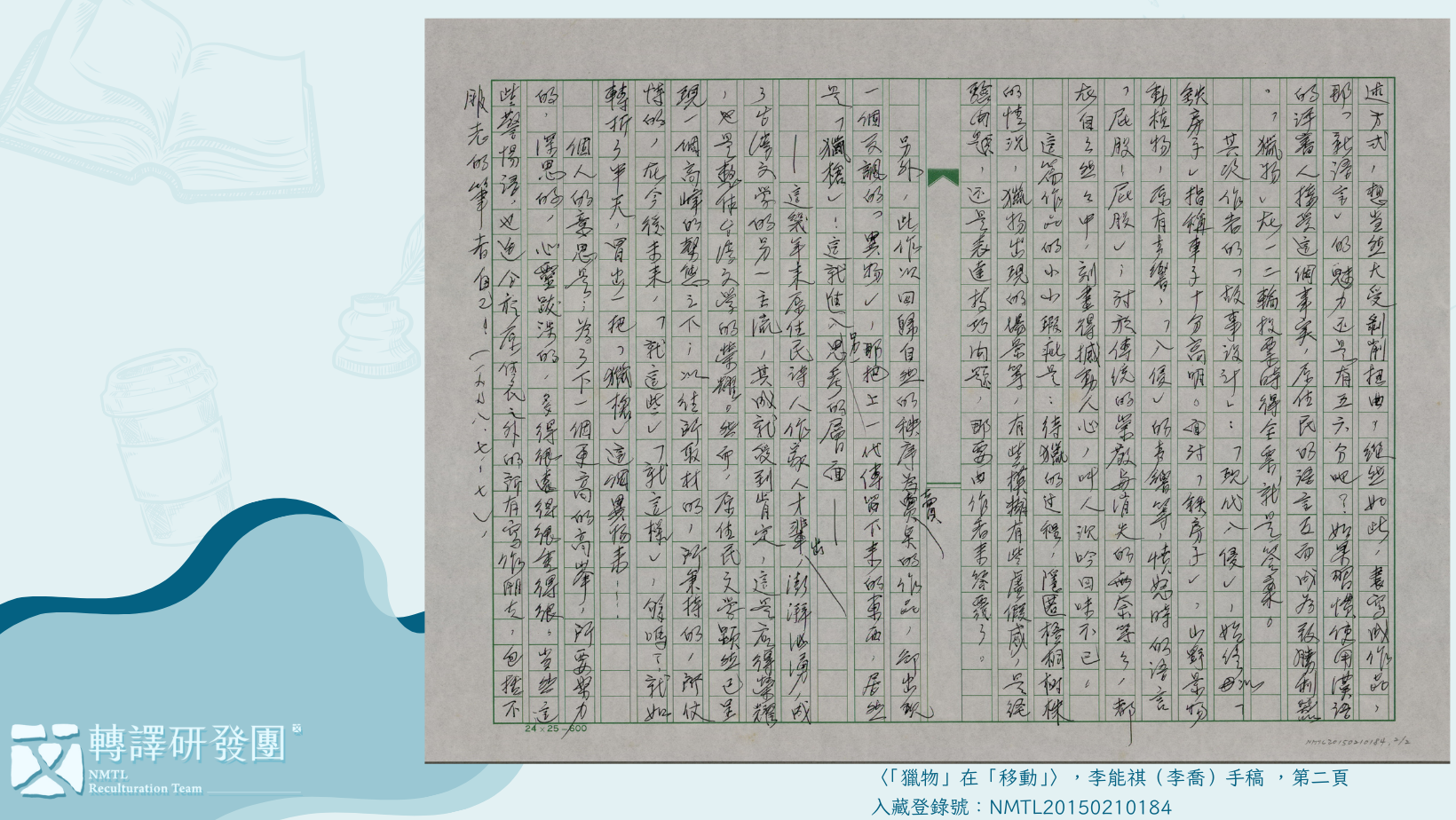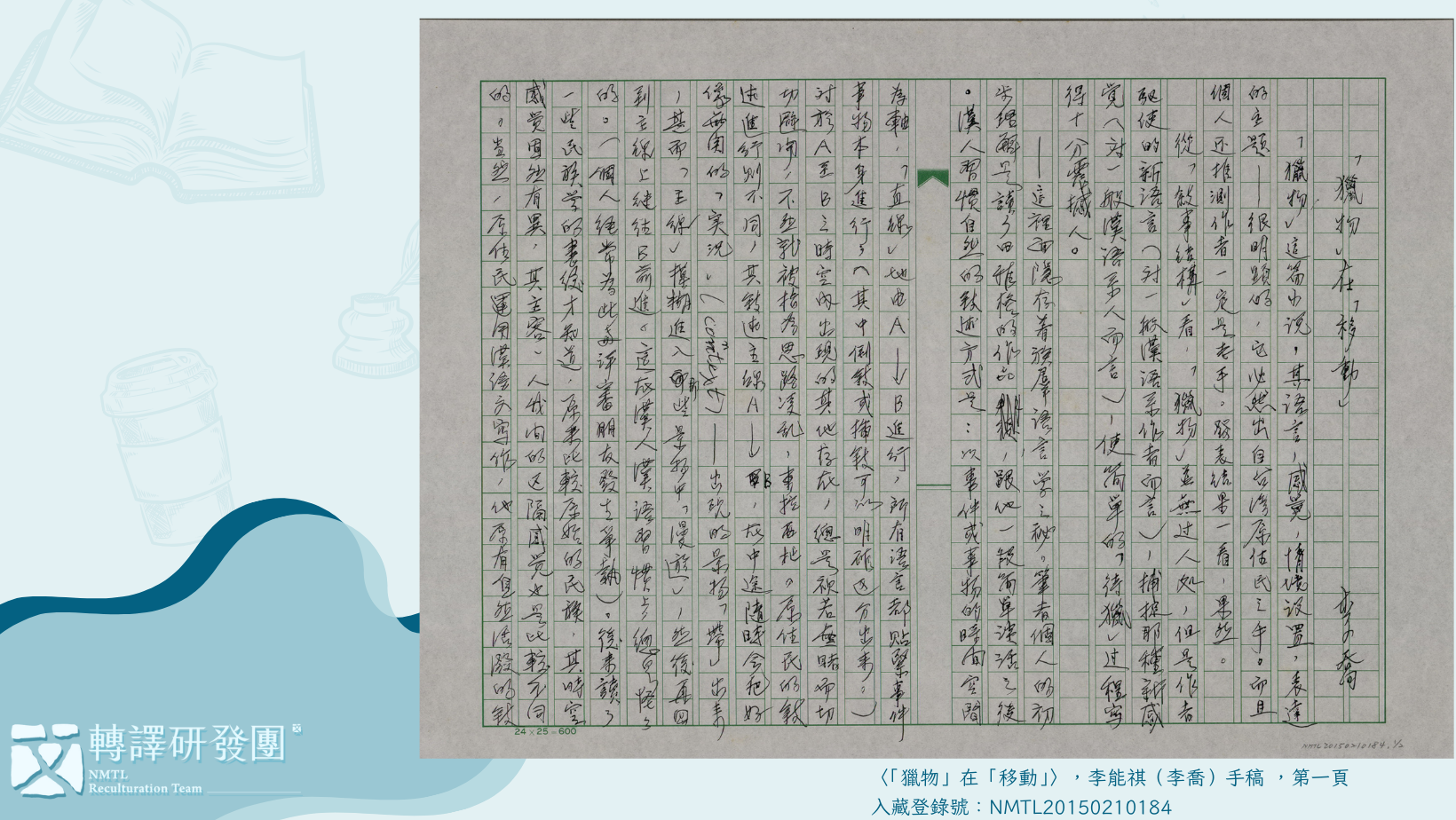李能棋(李喬),〈「獵物」在「移動」〉手稿原件,書寫於600字稿紙。