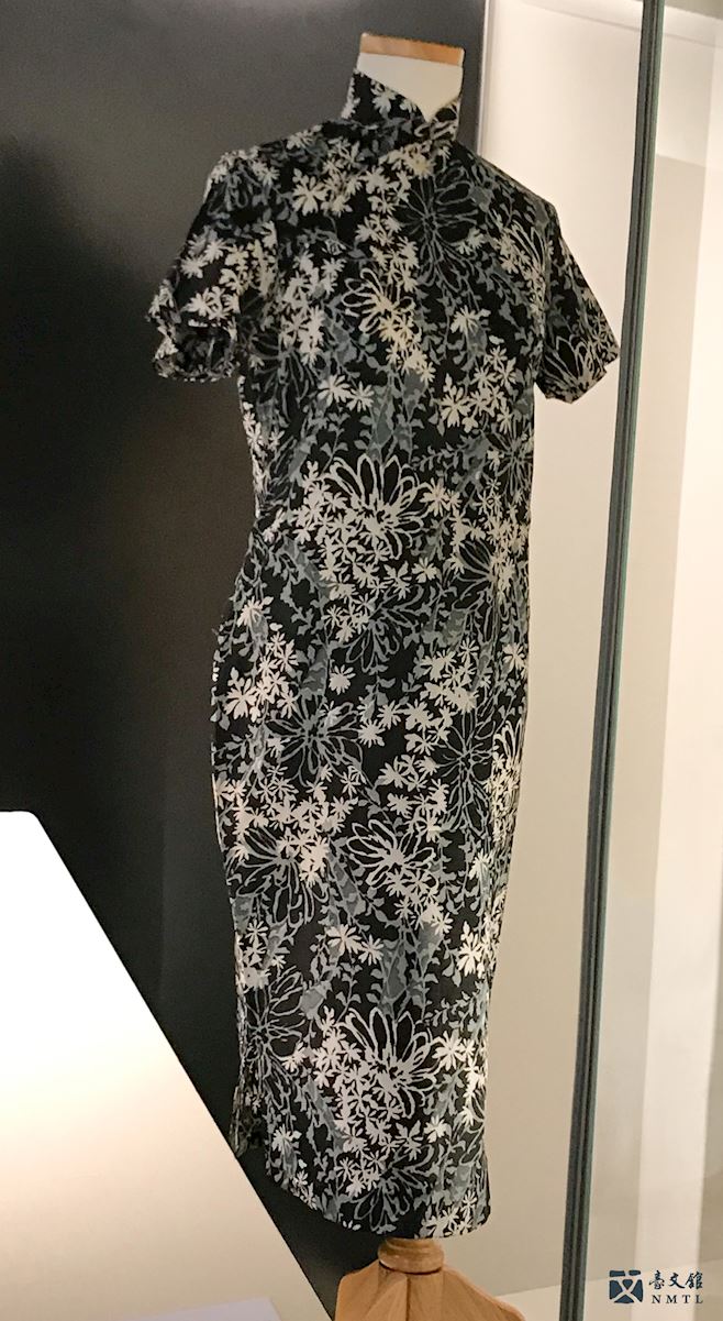 ▸ 艾雯珍藏之黑灰白花旗袍|艾雯(1923-2009)親自設計縫製的旗袍。艾雯、羅蘭、張秀亞等外省籍女作家,習以旗袍為服,彰顯當時代女作家的個人特質,艾雯不僅喜愛穿著,更善於針線,親手製作衣衫與旗袍。(本展品將不定期更換,實際展出項目請依現場為準)
