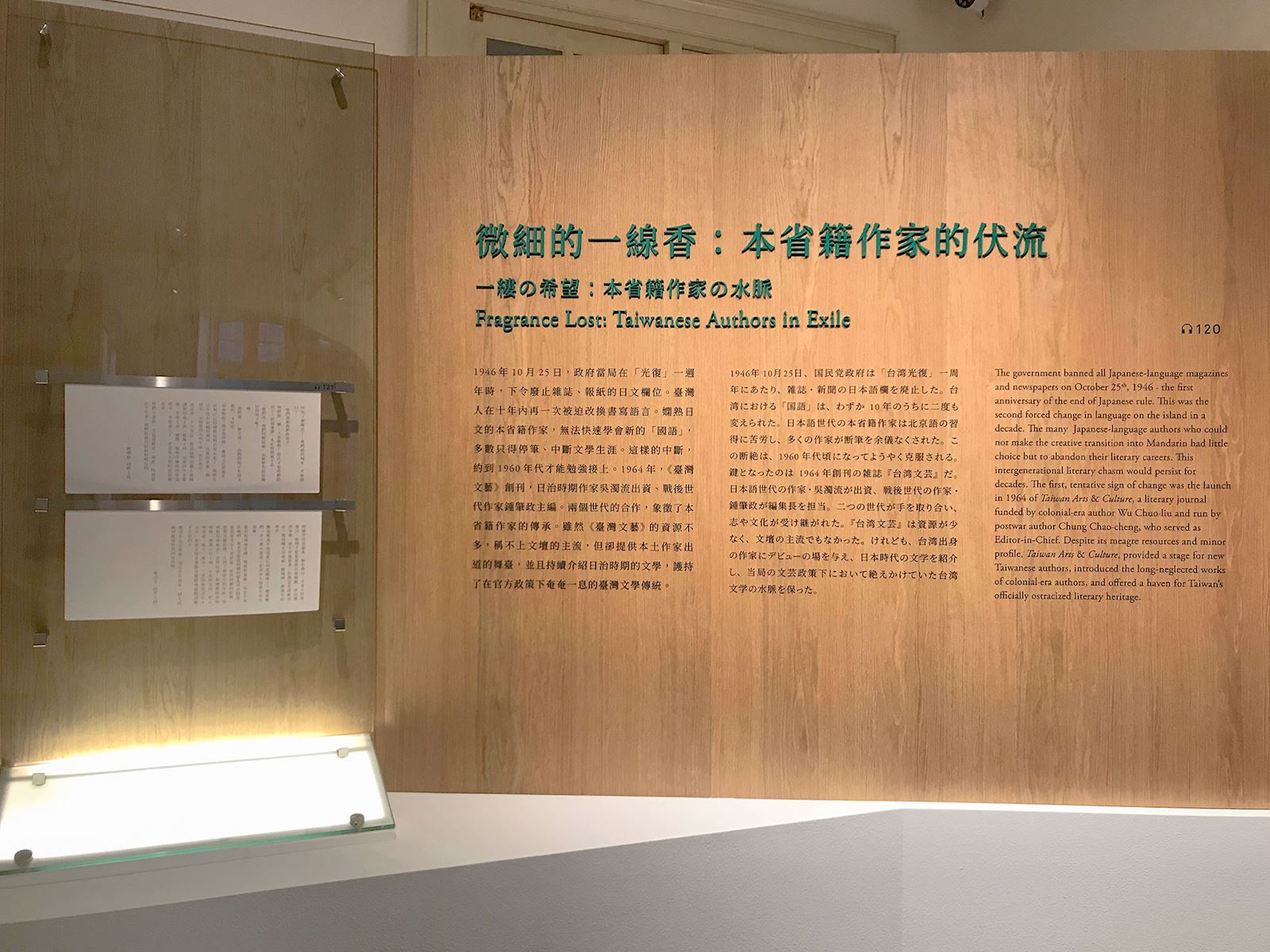 1946年10月25日,政府當局在「光復」一週年時,下令廢止雜誌、報紙的日文欄位。臺灣人在十年內再一次被迫改換書寫語言。嫻熟日文的本省籍作家,無法快速學會新的「國語」,多數只得停筆、中斷文學生涯。這樣的中斷,約到1960年代才能勉強接上。1964年,《台灣文藝》創刊,日治時期作家吳濁流出資、戰後世代作家鍾肇政主編。兩個世代的合作,象徵了本省籍作家的傳承。雖然《台灣文藝》的資源不多,稱不上文壇的主流,但卻提供本土作家出道的舞臺,並且持續介紹日治時期的文學,護持了在官方政策下奄奄一息的臺灣文學傳統。
