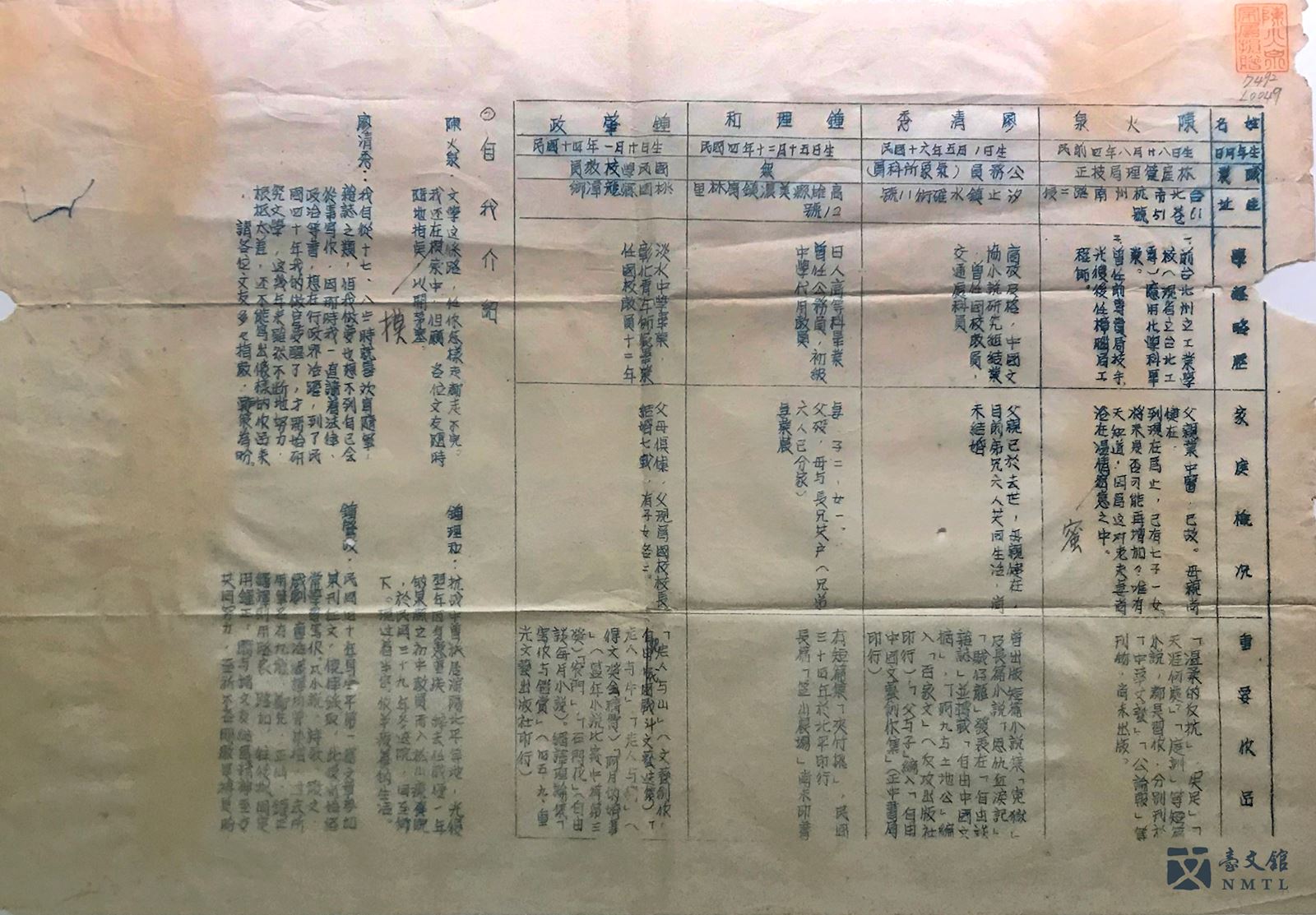 ▸ 李榮春《祖國與同胞》手稿|李榮春(1914-1994)為戰後第一批本土作家,《文友通訊》成員之一。長達70萬字的《祖國與同胞》為李榮春代表作,1953年獲得官方機構「中華文藝獎金委員會」稿費補助。