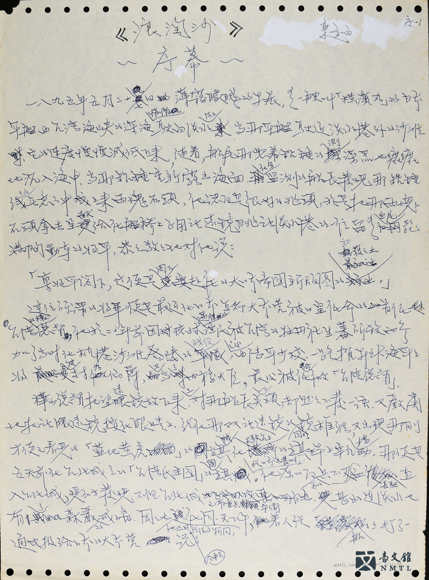 ▸ 東方白《浪淘沙》手稿|東方白(1938─)長篇小說《浪淘沙》手稿,為臺灣大河小說代表作之一,費時十年完成。透過臺灣第一位女醫師蔡阿信一生的故事,描繪三個家族的人世滄桑與悲歡離合,由此映現外在勢力(浪)如何不斷「淘」洗臺灣人民(沙),呈顯臺灣人的精神。