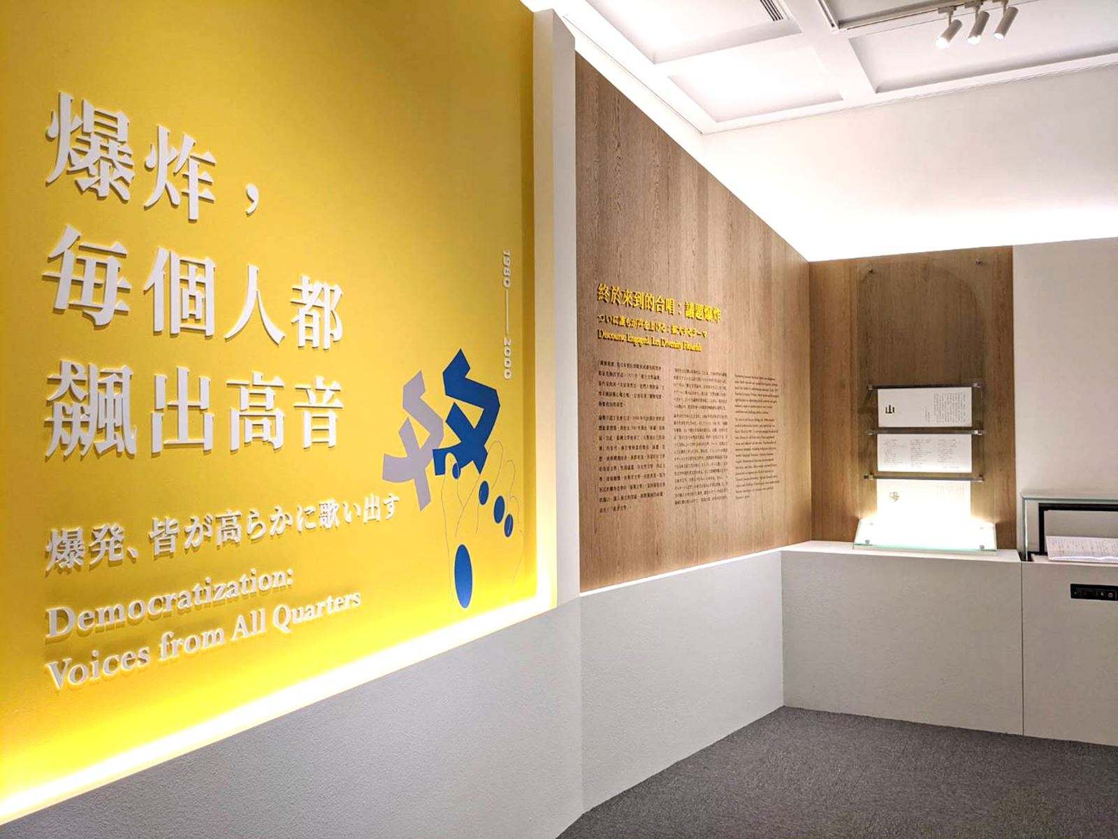 錯落垂掛的螢幕,循環播放作家談論自身作品的影音。於展間走動時,你將感受到被各界議題包圍的視讀意象。歡迎走進眾聲喧嘩的台灣文學新時代。