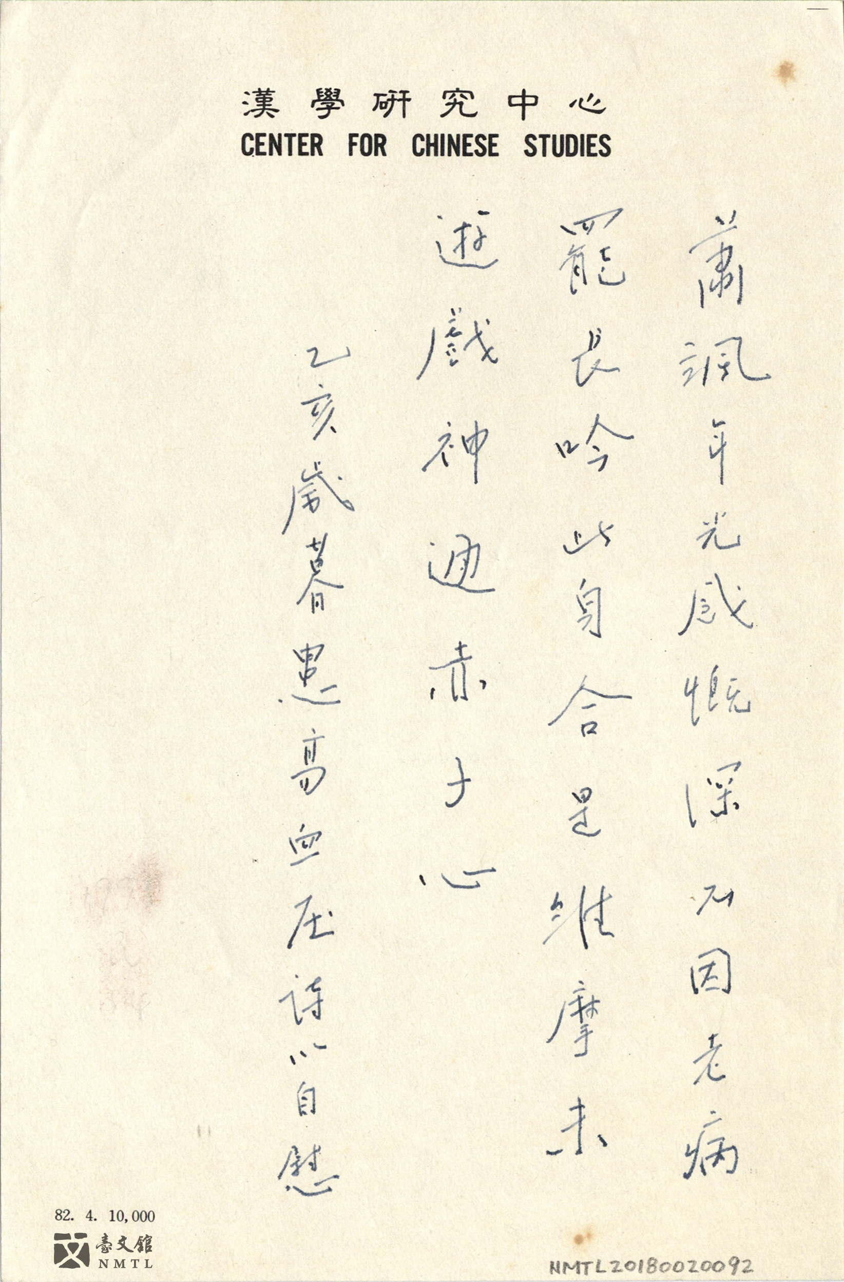 ◊ 〈乙亥歲暮患高血壓詩以自慰〉