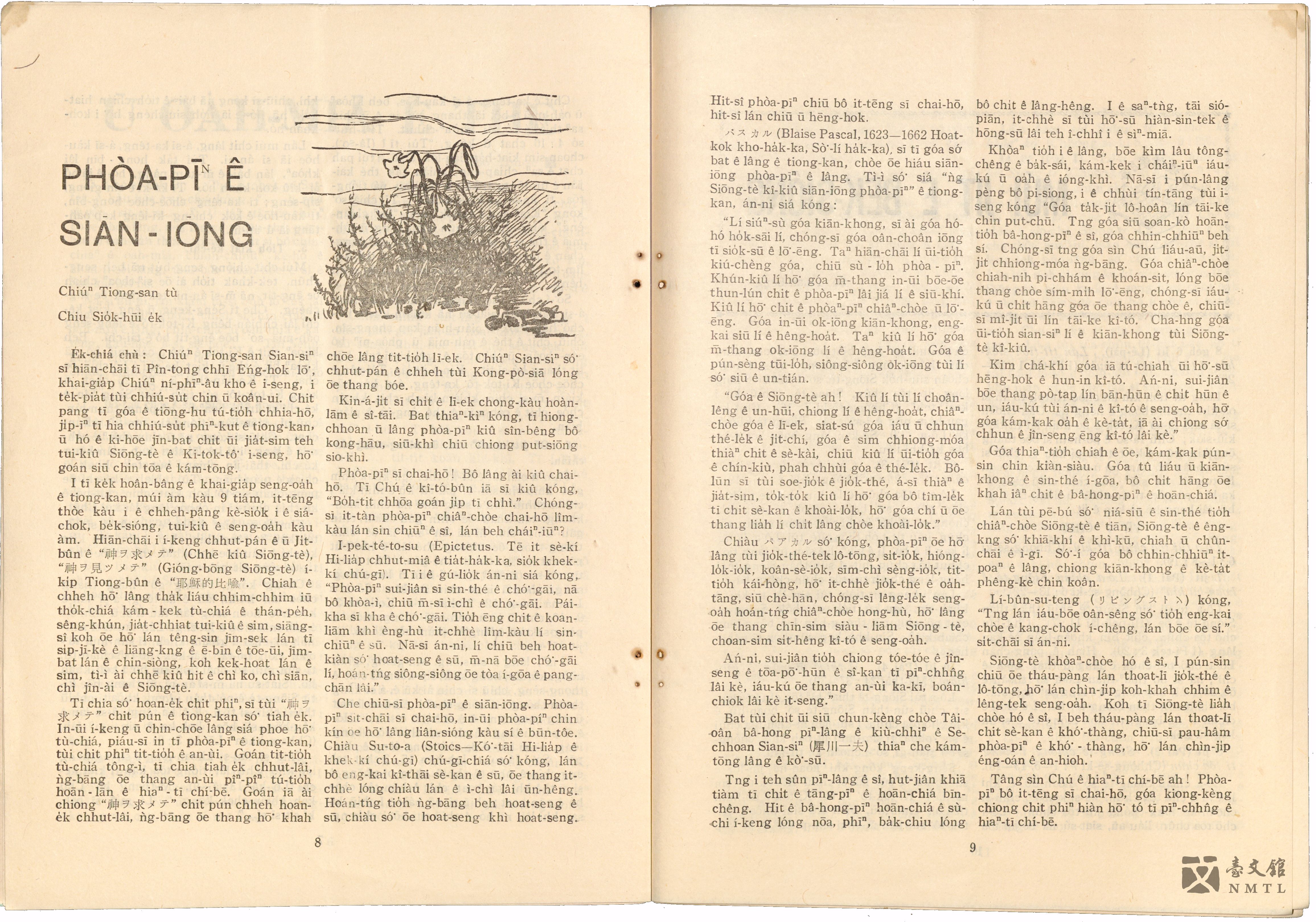 蔣中山在〈Phòa-pīⁿ ê siān-iōng〉(生病的善用)中說明,許多人都將生病視為災禍降臨,但其實只要轉念一想,生病不僅不是阻礙,還會意外幫助自己。(台灣白話字文學資料蒐集整理計畫捐贈/國立臺灣文學館典藏)