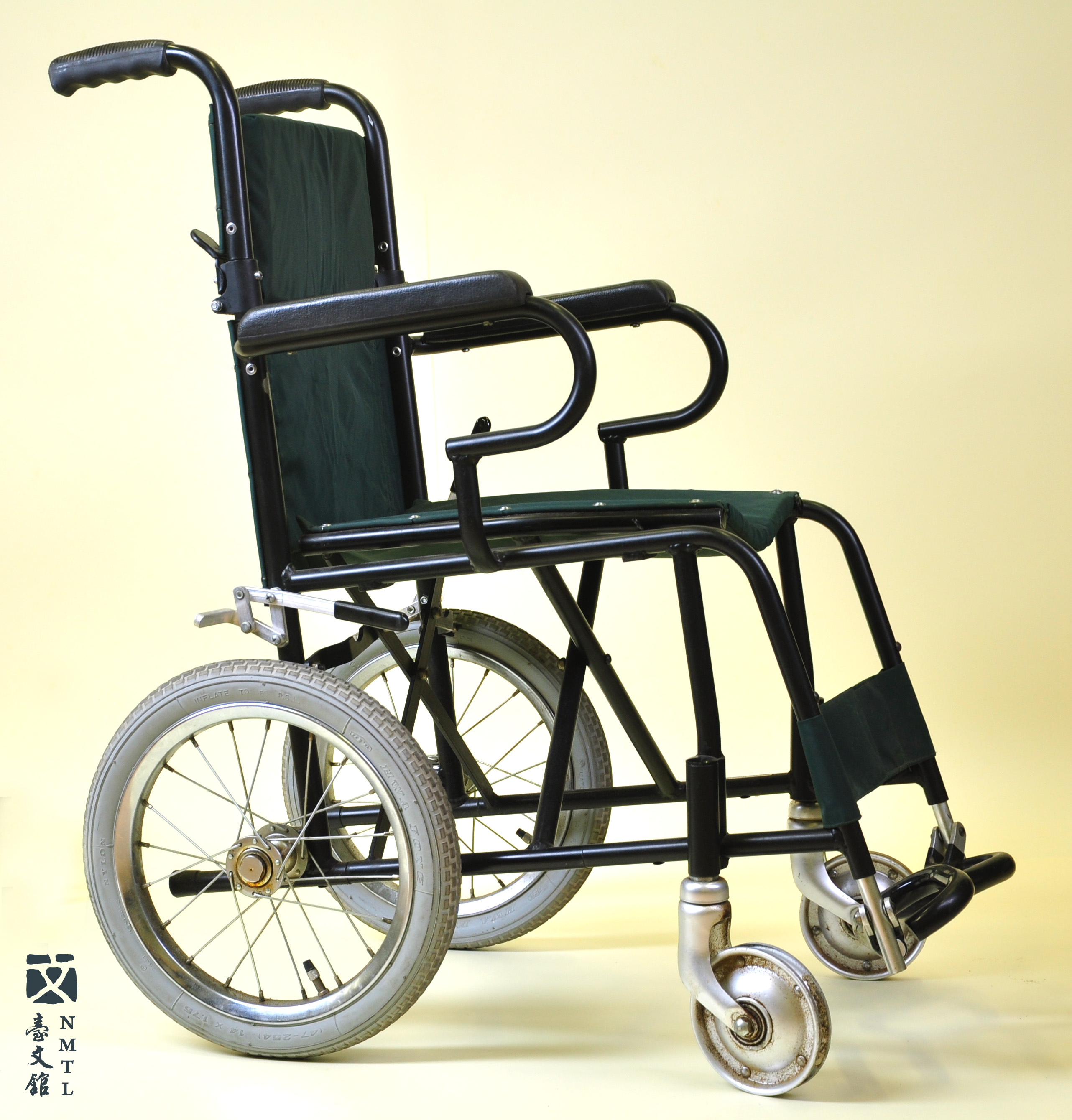 龍瑛宗(1911-1999)晚年至中國旅遊時,由夫人及次子劉知甫一同陪往。該把輪椅不僅承載龍瑛宗的晚年生活,也見證父子之間的情誼。(龍瑛宗捐贈/國立臺灣文學館典藏)