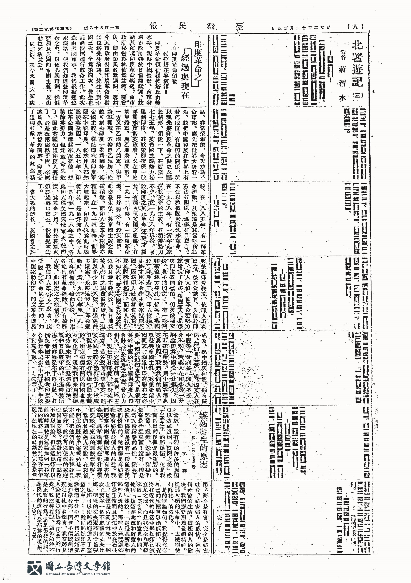 ◰  蔣渭水〈北署遊記 (三)〉 《臺灣民報》1927年12月25日