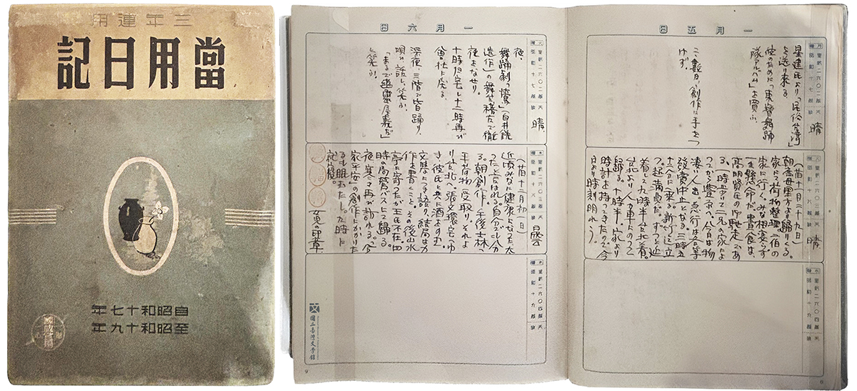 2020年7月盛夏,呂赫若次子呂芳雄先生帶著日記前來臺文館,小心翼翼地從袋中拿出父親僅存唯一傳世的手稿。歲月的氣息停駐書盒和滿佈膠帶的日記封面,翻開內頁隨著其中上乘載的筆觸,彷若能窺探曾經閃熾絢麗的文青理想,匆匆畫過一個烽火煙硝的時代。此件呂氏唯一歷劫殘存的手稿,於1942至1944年以日文書寫。在戰後漫長的白色恐怖期間,日記始終由呂氏長子審慎保存,直至1993年於田野調查過程始公諸於世。