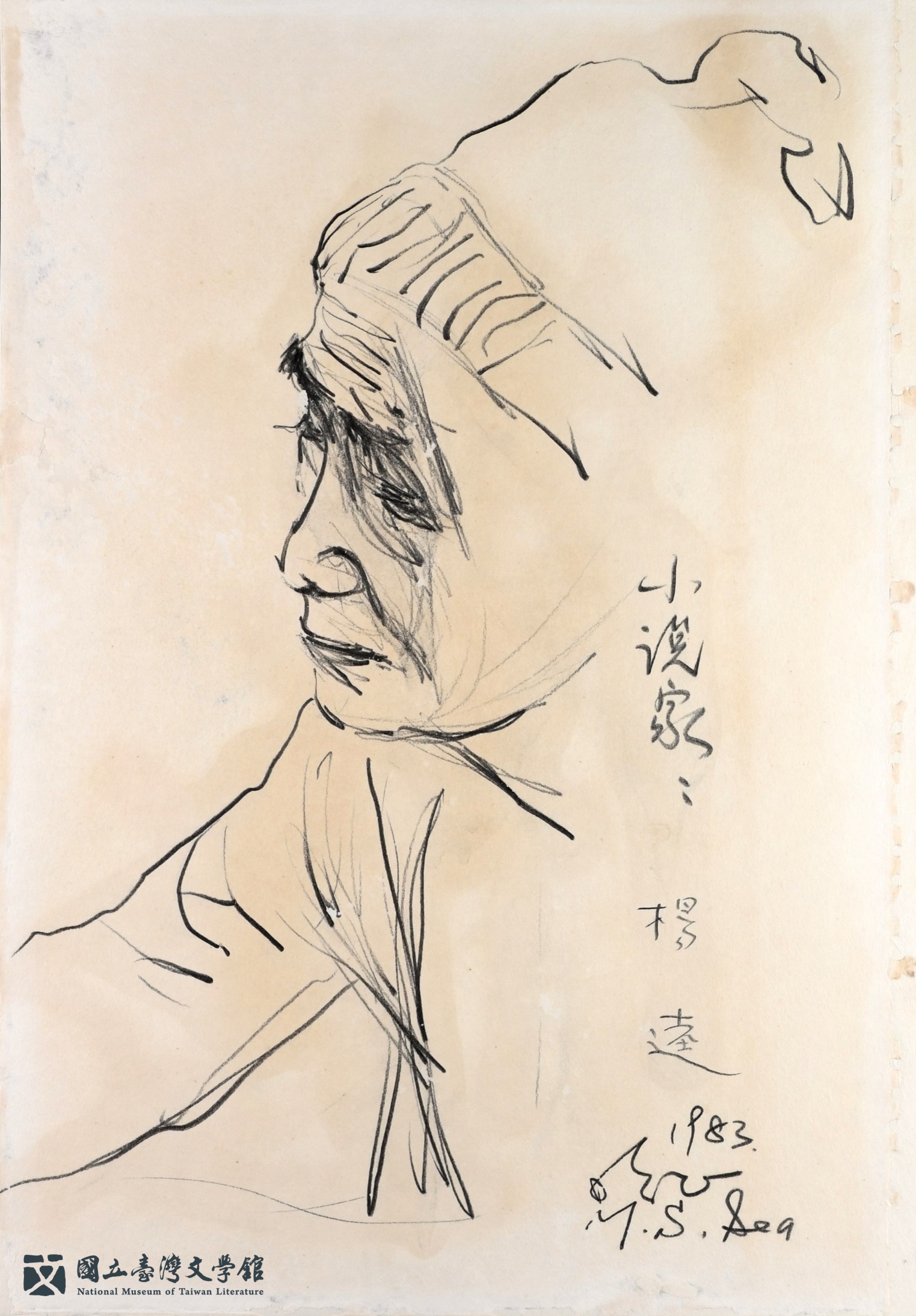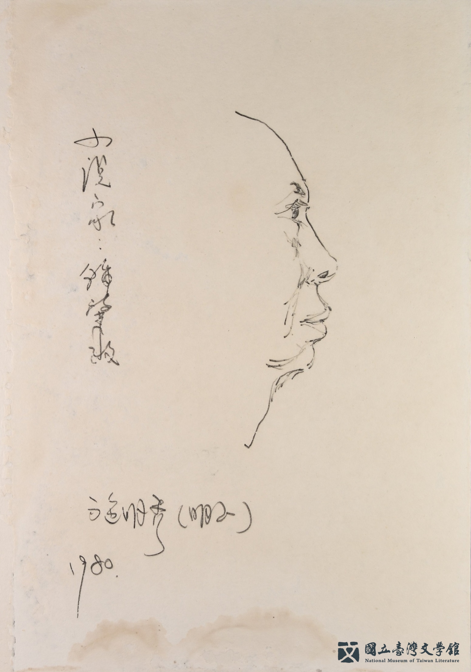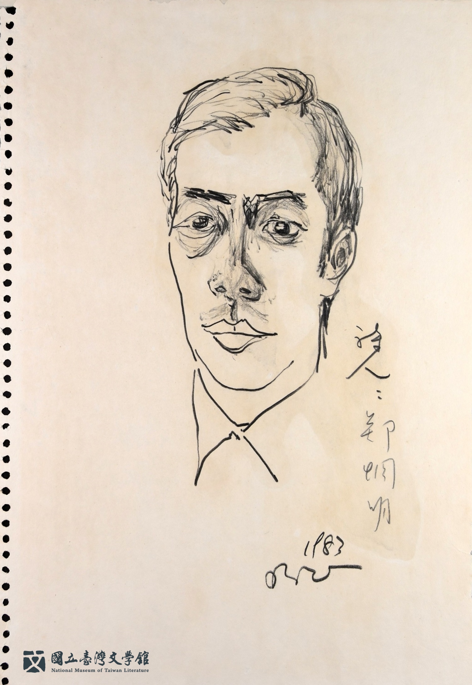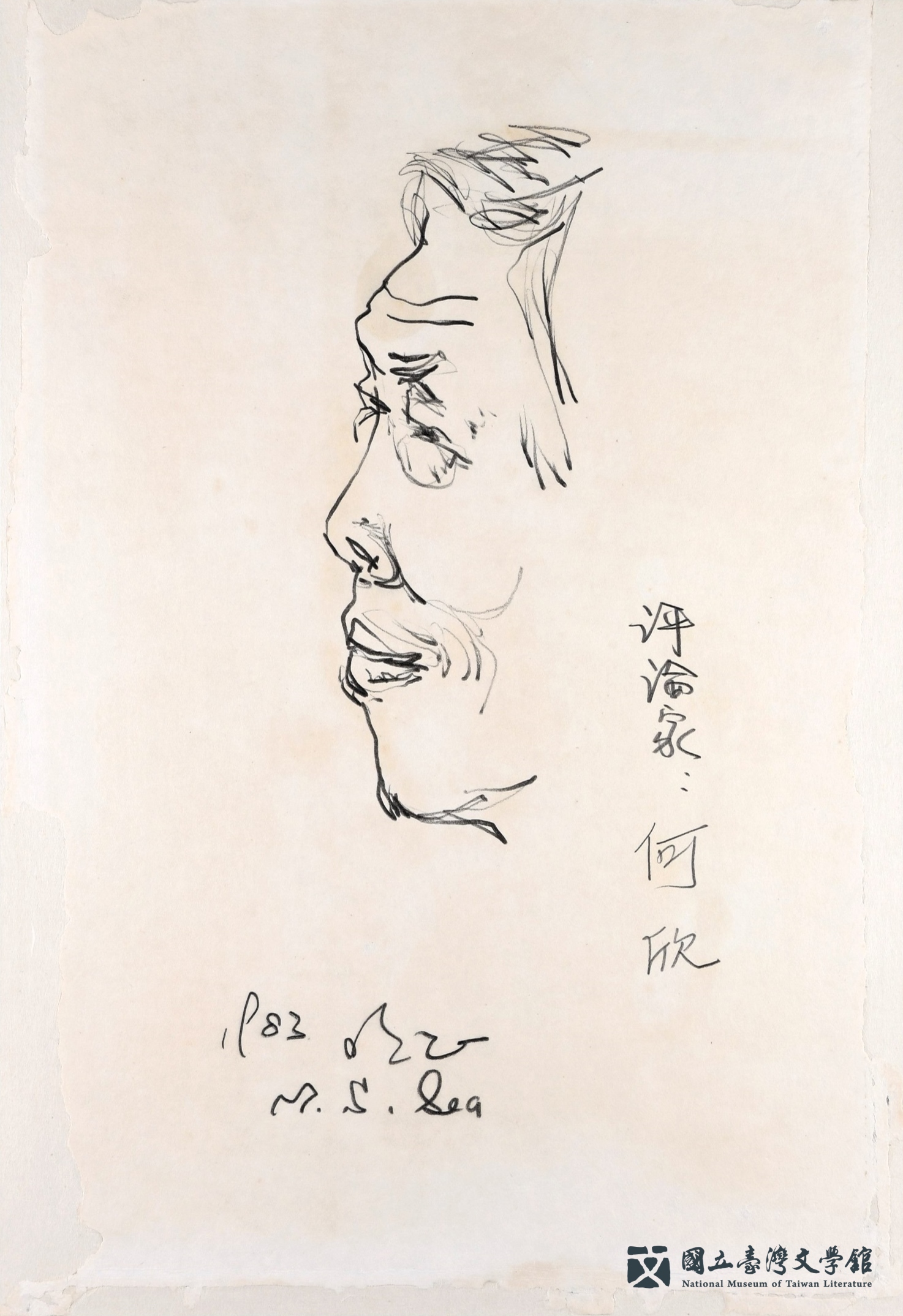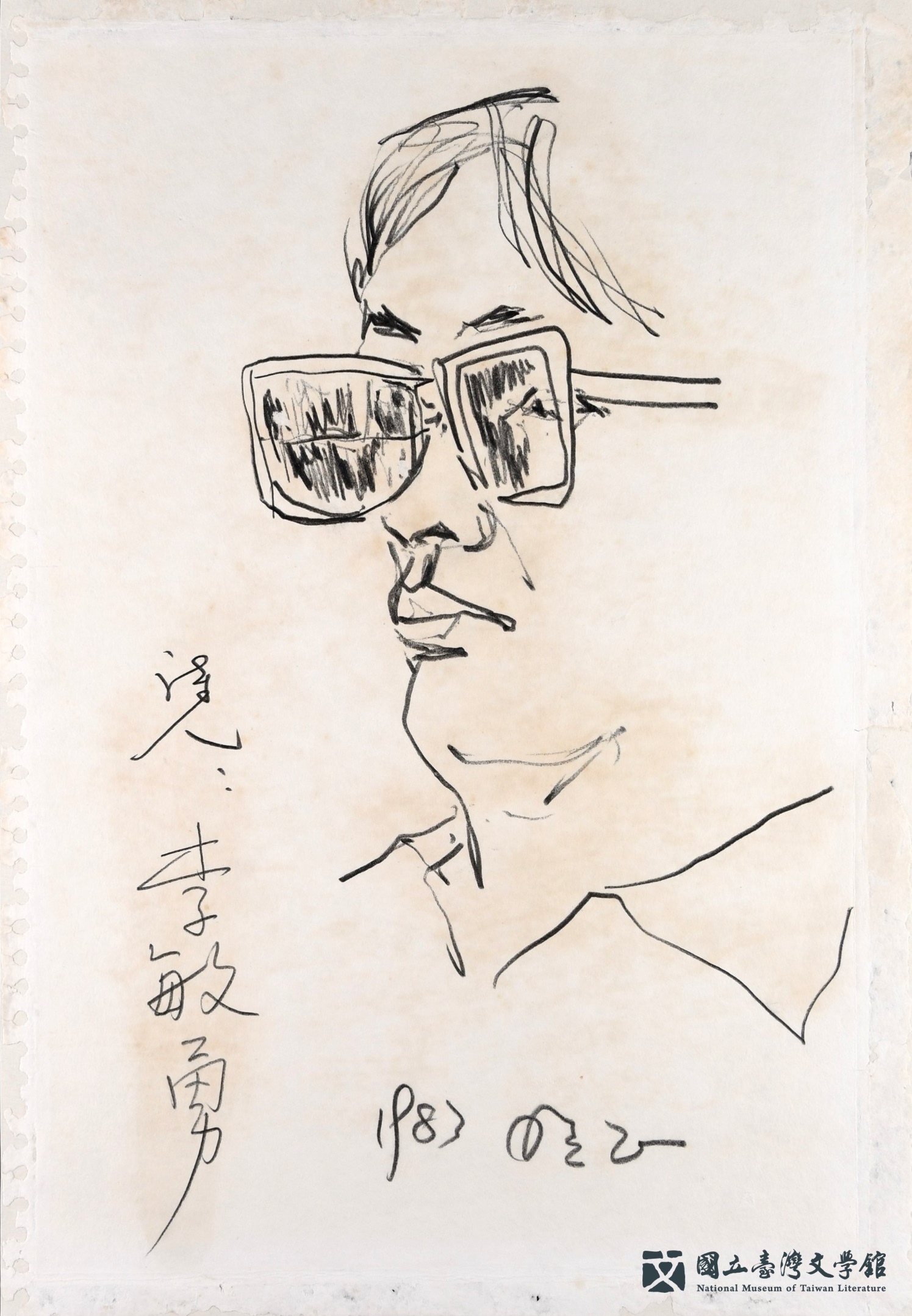 臺文館典藏來自鍾理和紀念館提供的19件施明正創作的人物速寫,為1979年鍾理和紀念館成立開館之初,受許多作家、畫家的支持,包括施明正,亦完成了數十幅的作家速寫,框裱後供紀念館陳列。