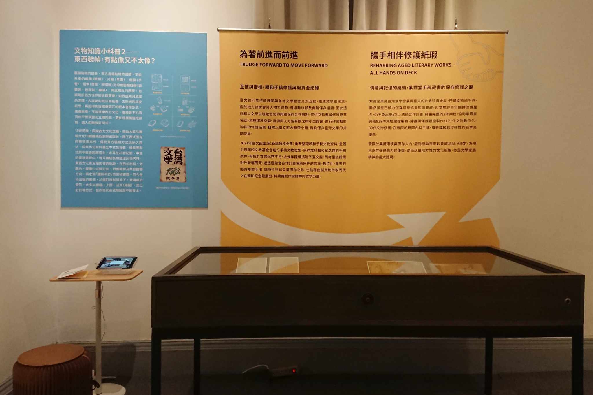 在本館地下室靜謐的一隅,典藏人員為文物經過仔細地逐一登錄建檔,為其專業問診探查身世,得到一紙專屬的調養處方,目的是為了減緩光陰歲月在文物身上留下更多的痕跡。本館自2009年起打造文物修護室,歷經了14個年頭,替無數的珍貴文學文物提供各項完善且健全的醫療支援,多年下來累積了許多精彩案例。在物件本身既有的基礎之上,加上專業的悉心養護,才是這些文學史料更加源遠流長、歷久彌新的關鍵。