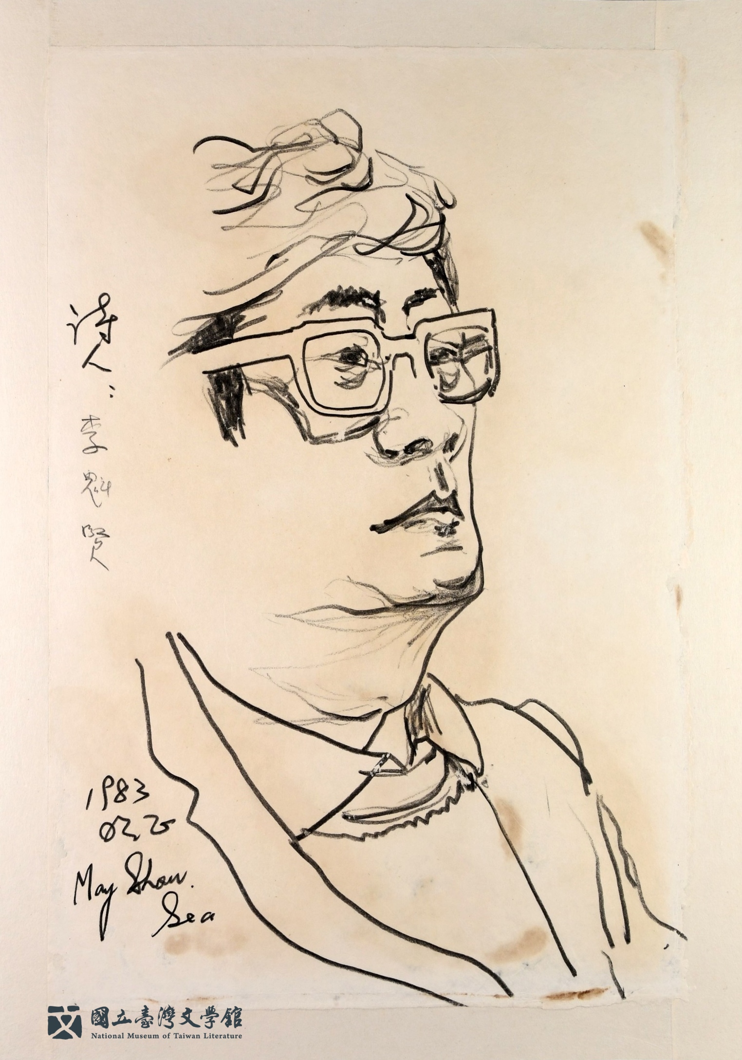 簡而有力的筆觸細膩刻畫了幾位詩人、小說家的神韻。入館前因坊間框裱材料不佳,及典藏環境的因素,造成同一批作品保存狀況有極大的落差,嚴重者即便經過修護,黃化的減緩效果亦是有限。透過不當材料的移除,並經由妥善的處理,得以重新拼湊一幅文壇創作者的群像。