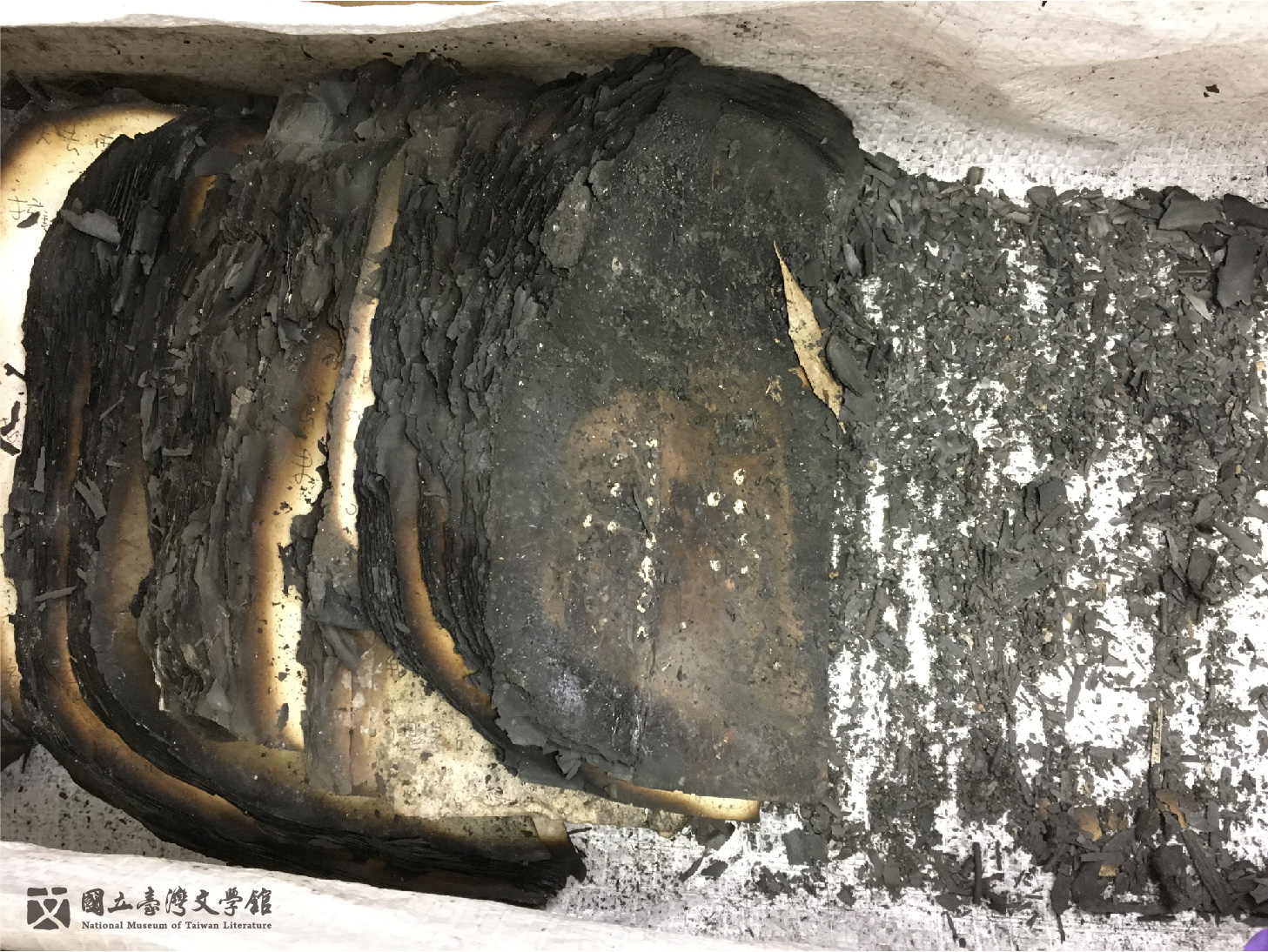 2019年5月11日,一場太麻里的暗夜大火,燒毀原住民作家撒可努創辦的獵人學校,也波及手稿存放的自家。火災的發生,因為燃燒 、熱與煤煙沉澱的損害,加之灑水搶救後,不可避免危害文物所傳承的文化、記憶,產生難以評估與不可逆的結果。由於火災當下以搶救為先,一般情況下,災後針對殘存文物的處理多是被忽略的,依據災損程度,常伴隨複合的劣化狀況,極大化地增加修護與保存火損物件需面臨的挑戰。