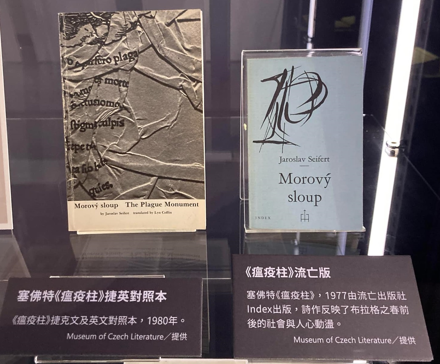 不同版本的塞佛特《瘟疫柱》。捷克文學館提供。