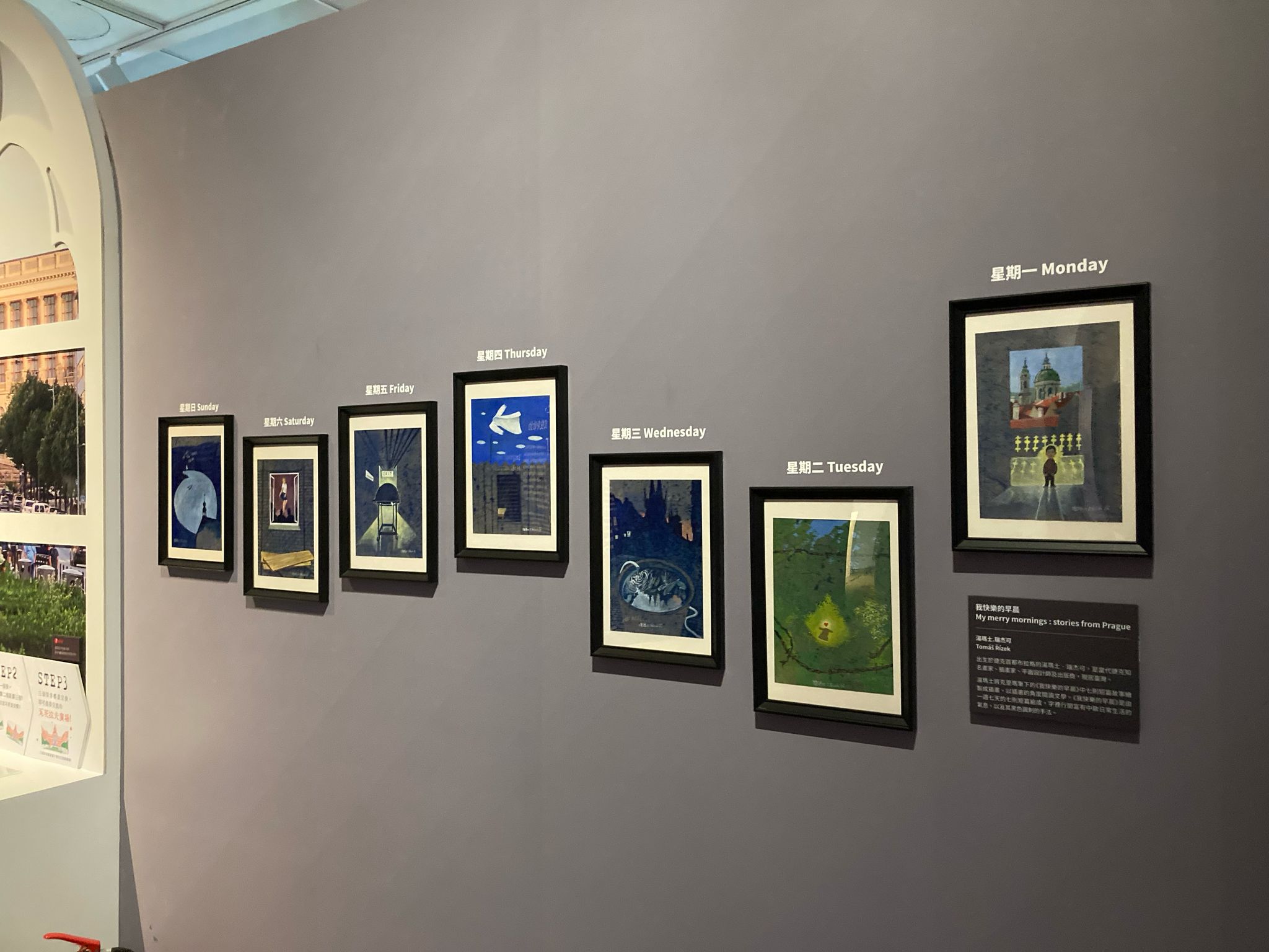 湯瑪士將克里瑪筆下的《我快樂的早晨》中七則短篇故事繪製成插畫,以插畫的角度閱讀文學。《我快樂的早晨》是由一連七天的七則短篇組成,字裡行間富有中歐日常生活的氣息,以及其黑色諷刺的手法。
