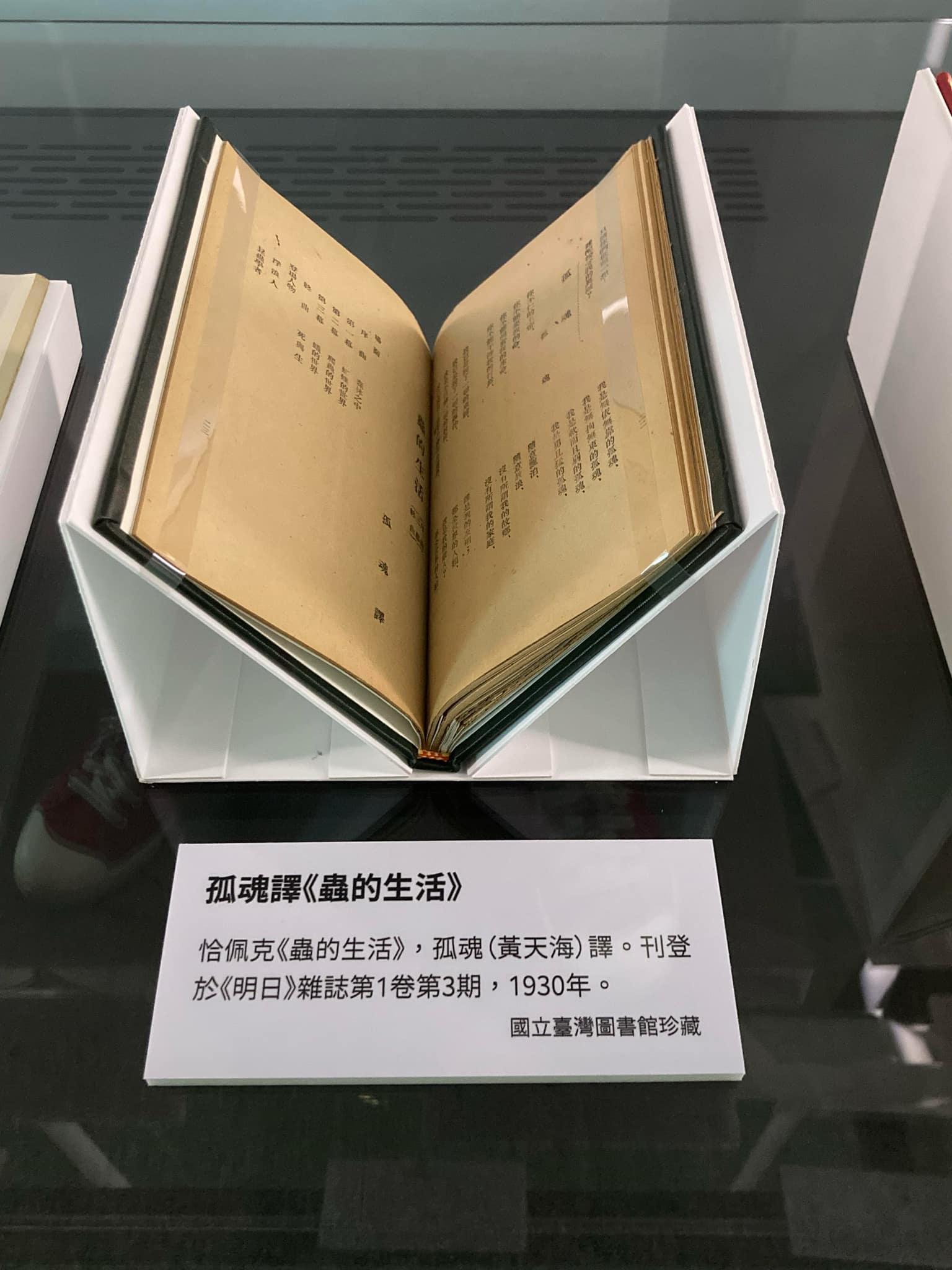 恰佩克《蟲的生活》,孤魂(黃天海)譯。刊登於《明日》雜誌1:3,1930年。國立臺灣圖書館珍藏。
