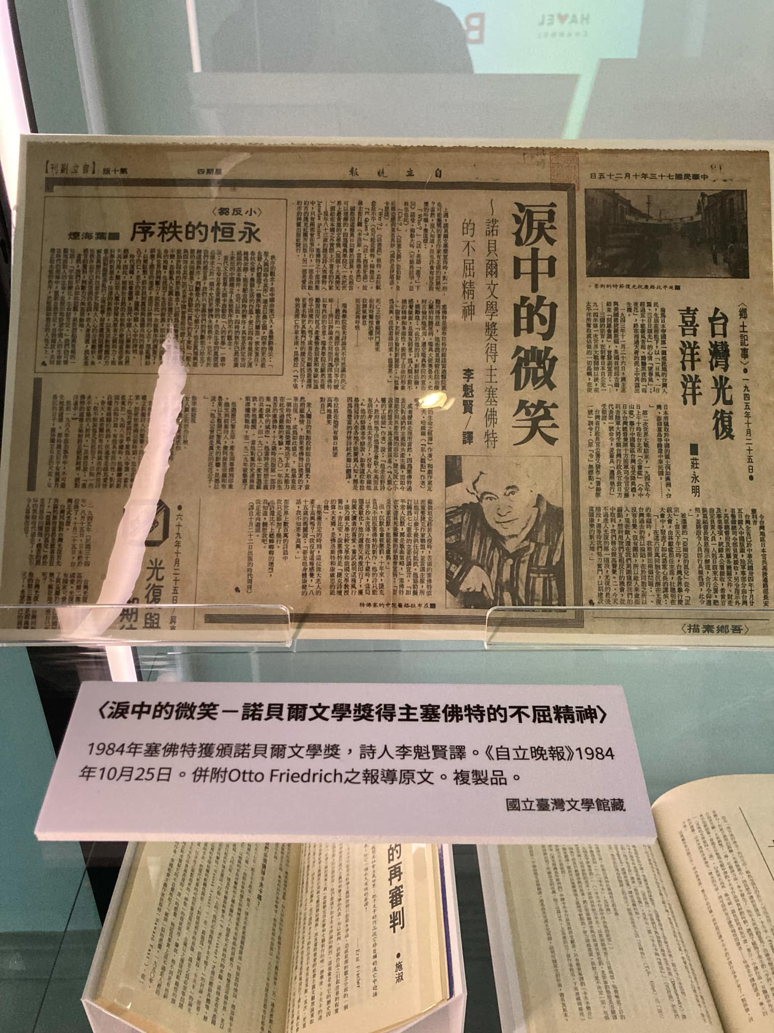 1984年塞佛特獲頒諾貝爾文學獎,詩人李魁賢譯。國立臺灣文學館藏。
