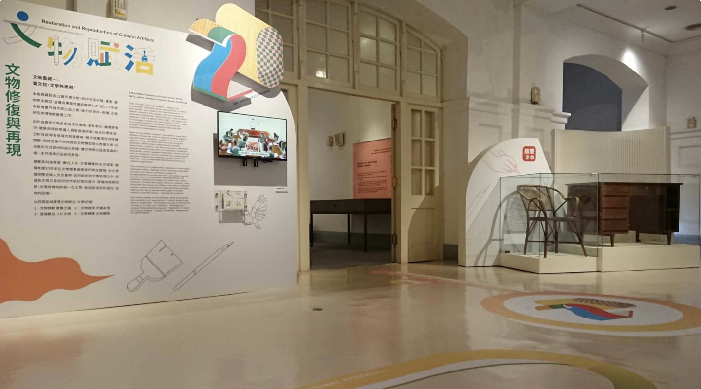 以四個區域展現文物賦活,文學記憶:「文物律動,徵集之路」;「文物再現,守護永恆」;「雲端數位,3D文物」;「文學轉譯,文物變裝」。
