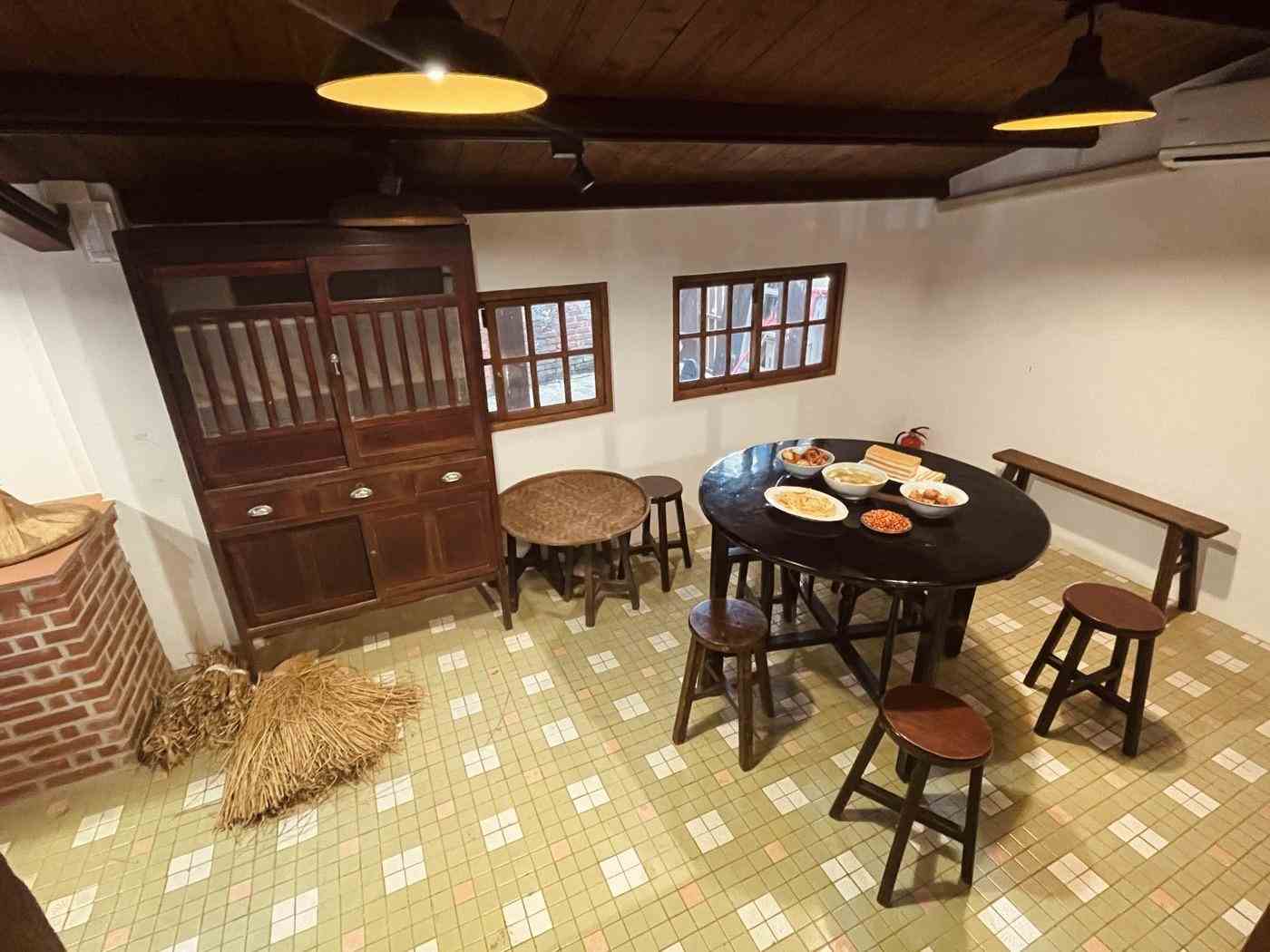 走進屋內《魯冰花》的書房,一眼就能看見精美檜木書桌佔據了房間大片面積,這不僅是鐘老眾多文學作品誕生之處,居住於此十年之久,小小的書房也孕育了影響 50 年代文壇深遠的《文友通訊》。而更往後探入,則可見到廚房飯廳裡,鍾老愛吃的客家菜餐桌,傳統九層糕、福菜五花肉湯都是鍾家的日常美味。