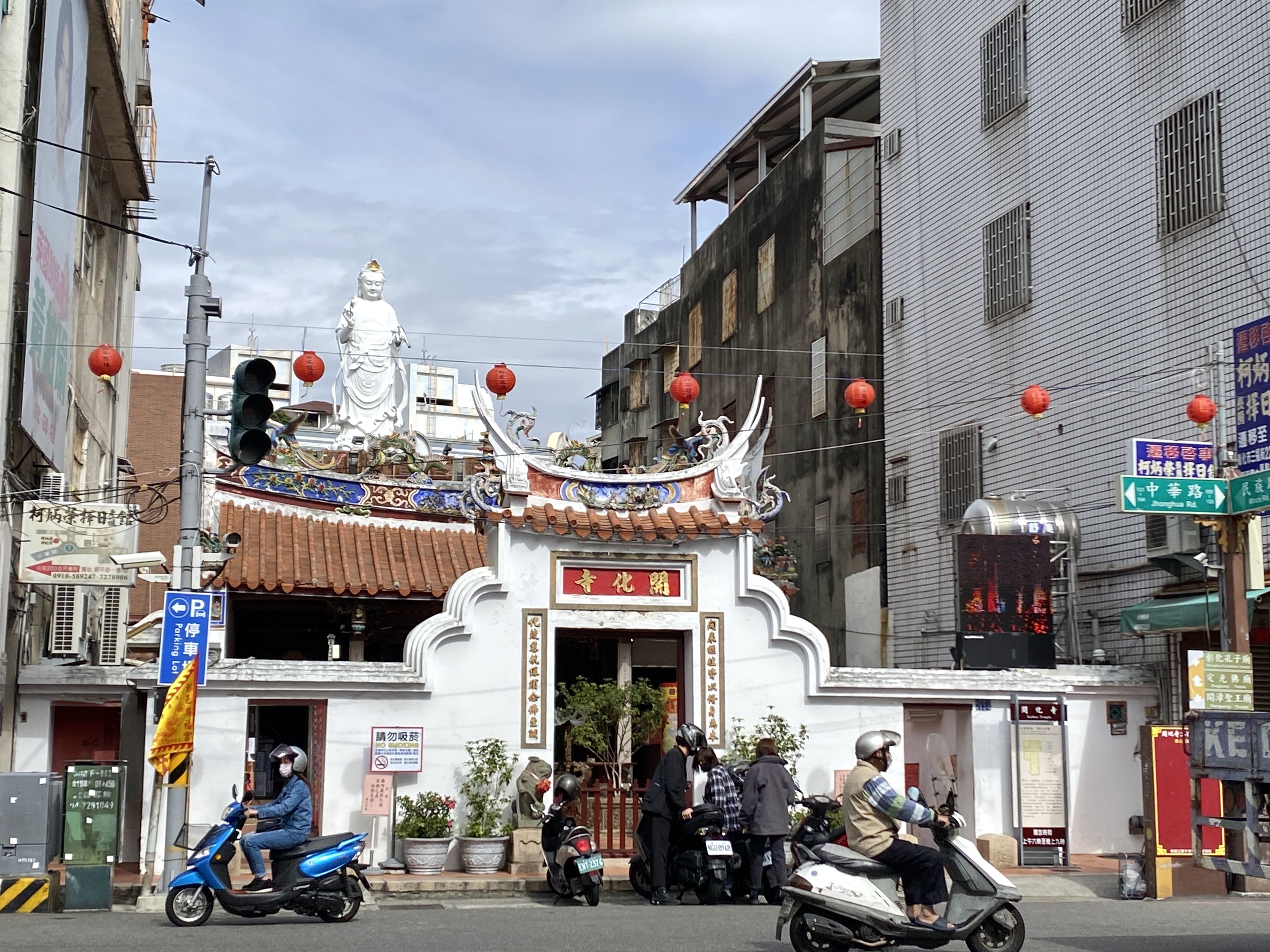 今年和彰化特別有緣,有機會到彰化各地走走。但幾次拜訪都是到彰化車站後轉乘前往各鄉鎮,幾乎沒有在市區久待,這回利用一天的時間好好認識一下彰化市。 一早從賴和文學館出發,早上這一帶是傳統市場,周邊相當熱鬧,路上的阿姨伯伯大多騎機車來買菜。彰化開基祖廟就隱身在市場裡,日治時期因市街改正拆除,而後搬遷至現址。