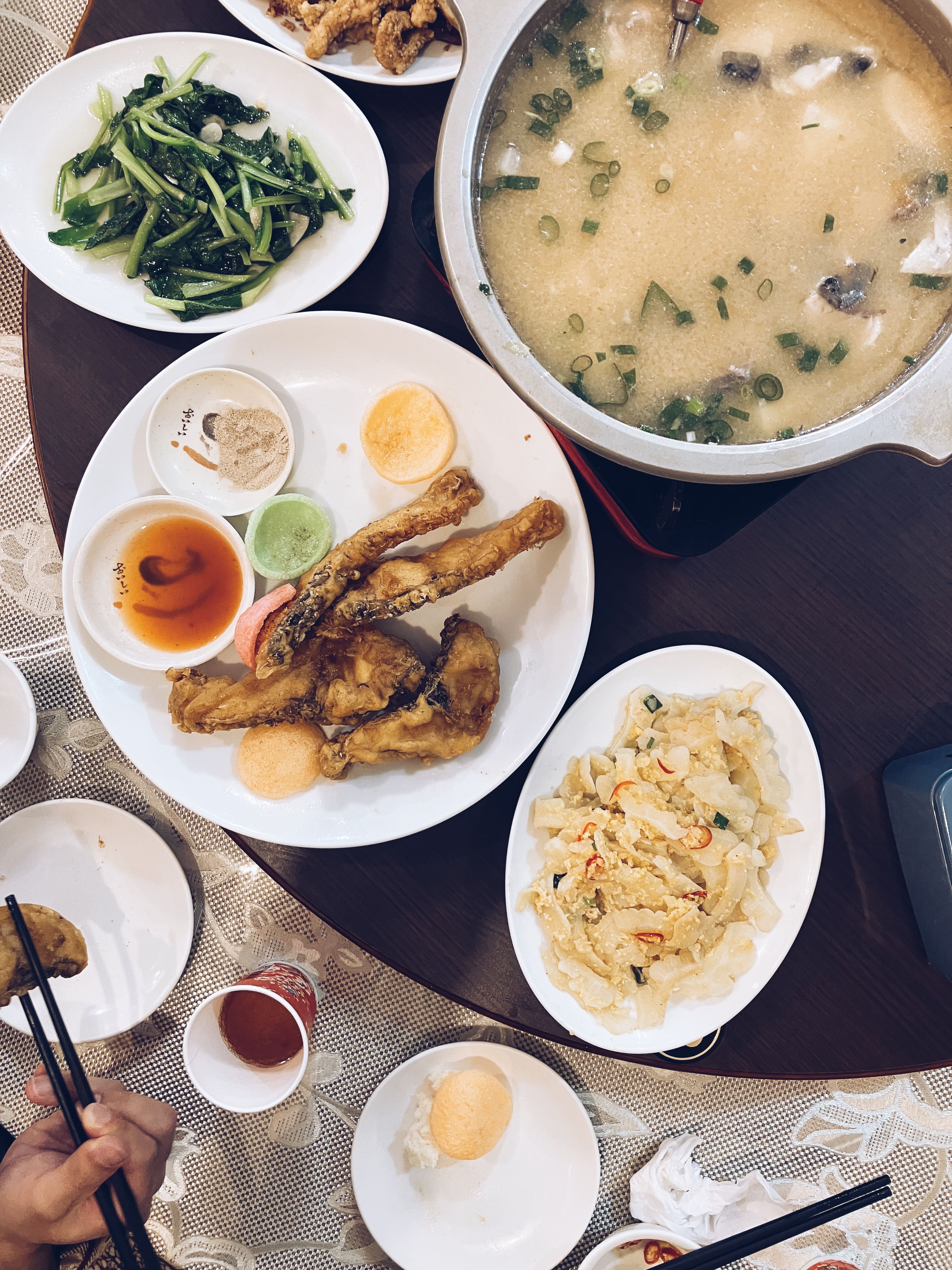 最近在臺灣文學館的網站上,發現各種主題路線的規劃分享,以及與路線有關的文學作品介紹,對於假日想出門走走,但不擅長安排景點的人來說很實用!前幾天趁著空擋,我選擇了聚焦在桃園龍潭地區的「三坑、石門、客家人」路線出發。 這裡說的石門,指的是「石門水庫」,來到石門水庫前,我們可以先簡單認識桃園的地理環境:桃園因地勢高,缺乏穩定的灌溉水源,土壤相對貧瘠。先民在開墾時,必須建造許多埤塘及水圳來蓄水,才有辦法種田,所以桃園的埤塘、水圳數量多,密度也非常高,而這樣的地理位置特色,也影響了當地的生活樣貌。 在臺灣客家文壇極具代表性的鍾肇政小說《大壩》、《大圳》中,就描述了村莊面對「水庫、水圳興建」這種現代化建設,地方居民有各種存疑及觀點衝突。水庫除了使地景帶來極大的變化之外,對老一輩的人來說,更在意的是造成祖產失守;對年輕人來說,則是帶來新的機會、便利的生活。「移去一座山,堵住那樣的大河流──這可能嗎?」鍾老透過小說帶出當時許多人的疑問,小說中反應了當時人們對於即將動工的石門水庫工程,有不同的意見。 另一位客家農民作家鄭煥,在《長崗嶺的怪石》也有這樣的描述:「沒多久,長崗嶺熱鬧起來了,挖掘水圳的工人們一批一批的來,分段而迅速的挖掘,把紅紅的泥土堆在兩邊,也開來了一大隊團體青年,紮着草寮,從早到晚,連雨天都不休息,忙着趕工,幾個月過後,水圳眞的完成了,這才運來造三合土的機器,攪拌三合土,鋪了上去,於是水圳像新的白血脈管,貫串長崗嶺。」 回到現代,石門水庫早已成了再熟悉不過的日常,民生用水、休閒健行都不可或缺,當時的衝突掙扎已不復見,不過實際來到水庫壩頂,高大壯觀的景色,還是會覺得十分不可思議,這到底是怎麼蓋起來的呀? 其實這裡對我來說並不陌生,從小家人就喜歡相約到石門水庫,或是到附近的石門山健行,到登山口聚集的攤販區走走,到附近品嚐活魚料理。這次來到石門水庫才發現,原來這裡甚至有一個活魚商圈。 聽說最初是因著水庫建造時,帶來了上千位工程人員進駐,人多了,餐廳店家也就一間間出現。且因為這裡的水質清靜,水域廣大,養出來的魚肉質鮮美,在水庫落成後,地方餐廳也就逐漸以石門水庫魚群為主打菜色,還可以選擇清蒸、椒鹽、糖醋、鹽酥等多種吃法,滿足人們對魚料理的各種喜好。