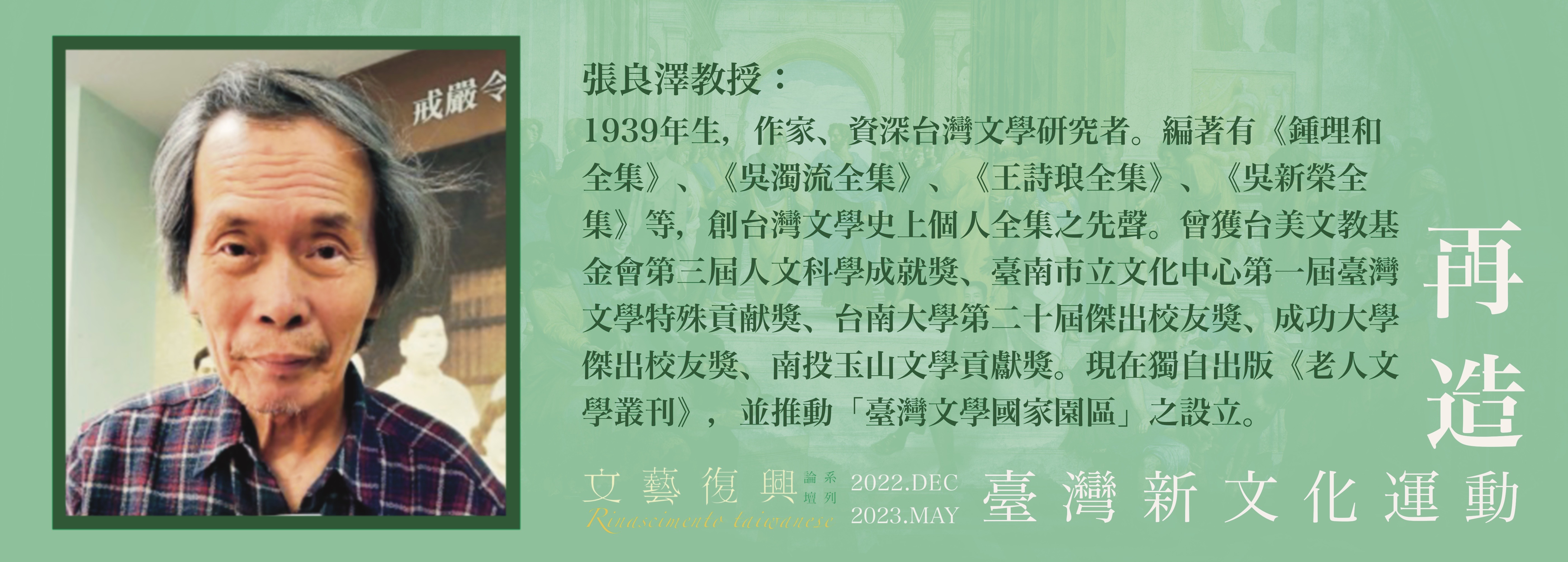 張良澤,1939年生,作家、資深台灣文學研究者。曾任成功大學講師、日本筑波大學副教授、共立女子大學教授、真理大學台灣文學系創系主任兼台灣文學資料館館長、《台灣文學評論》總編輯兼發行人。現任日本天理台灣學會理事、台南市台日文化友好交流基金會的常務董事。
