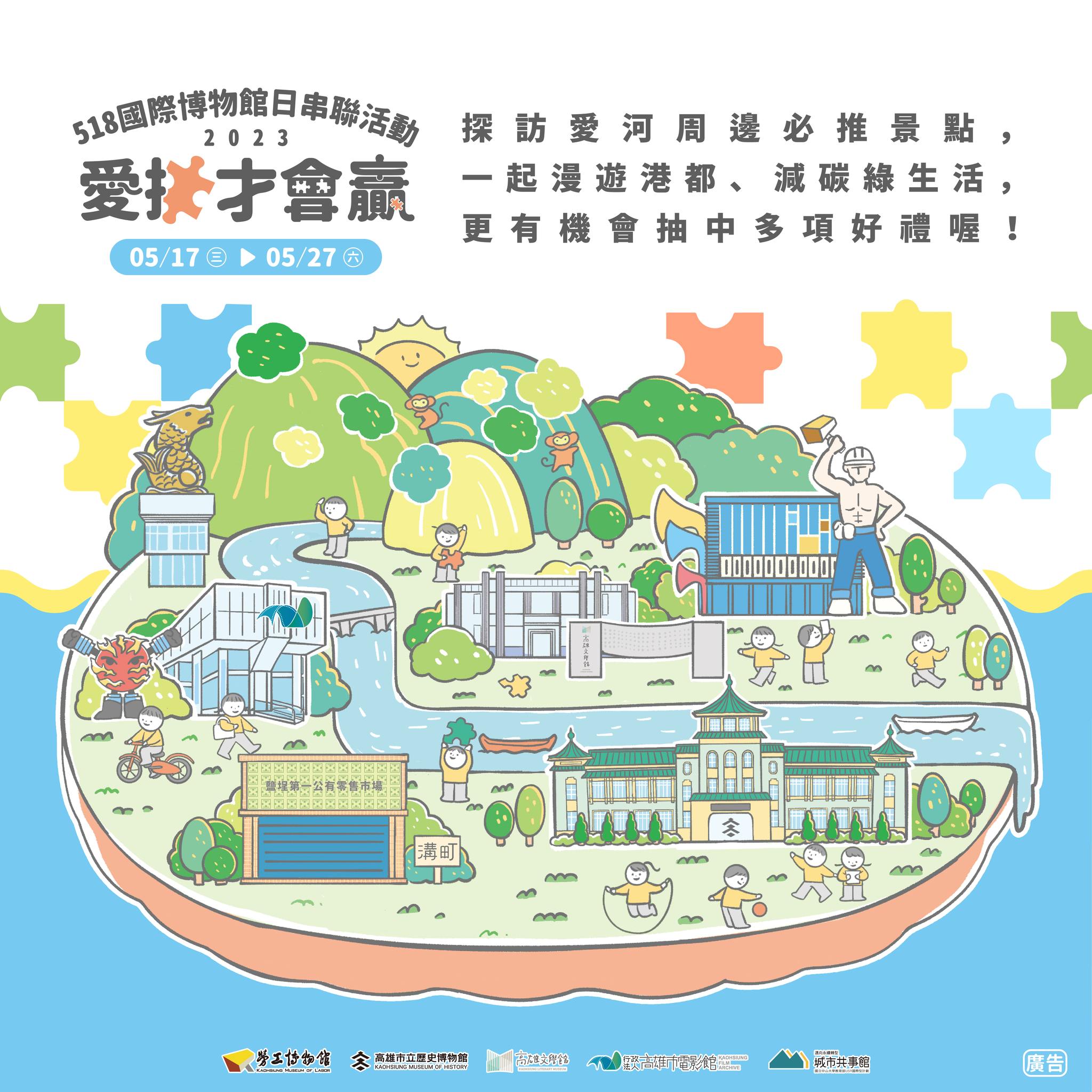 為響應2023年國際博物館日主題「博物館、永續性與健康福祉」,今年勞工博物館與愛河鄰近周邊館所合作,舉辦「2023年518國際博物館日:愛拼才會贏」,邀請大家以步行、騎乘單車或是大眾運輸工具等方式暢遊博物館,除了減碳愛地球之外,更能打造健康生活,讓博物館成為促進身心健康及永續發展的關鍵角色!