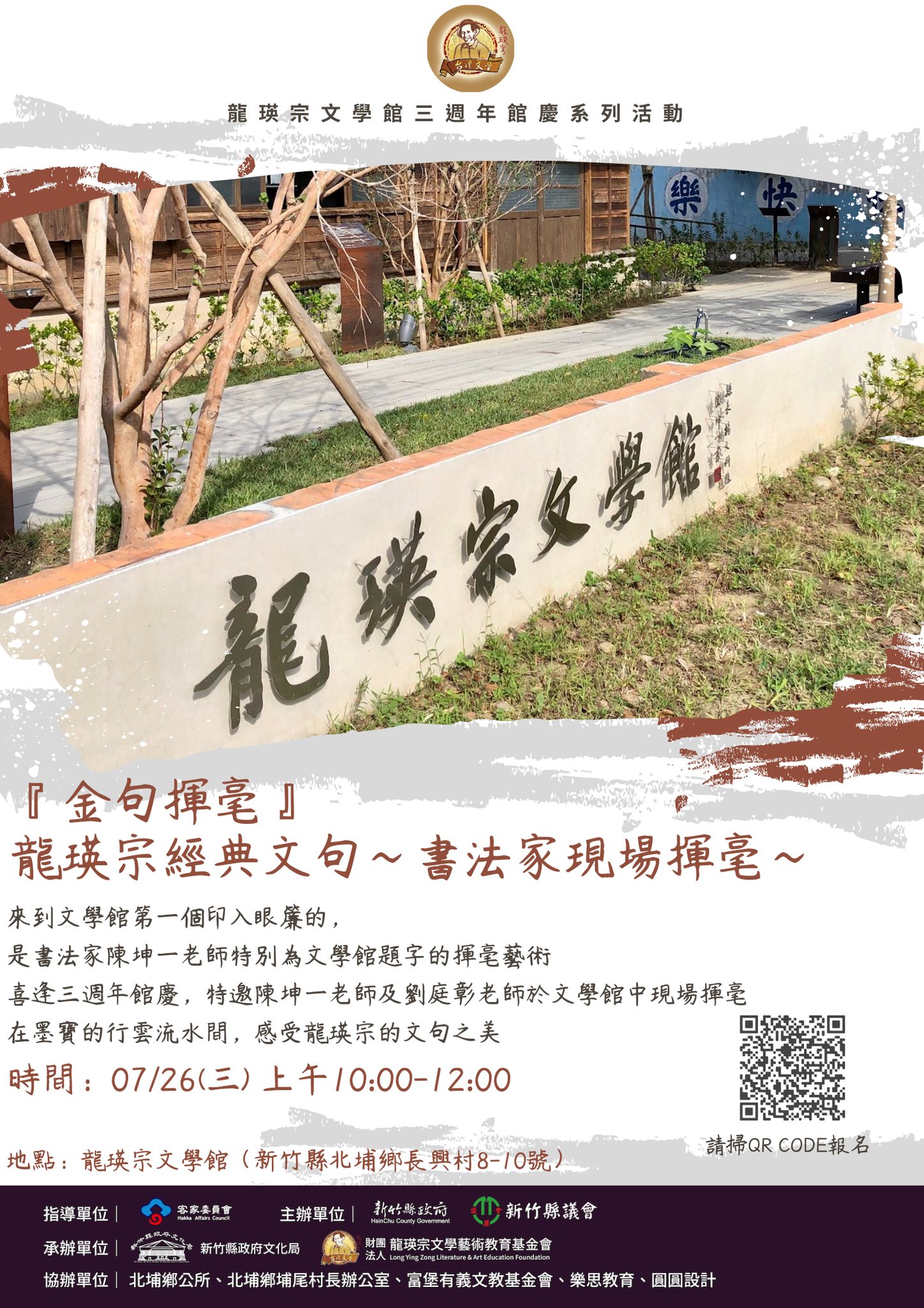 喜逢三週年,特別邀請陳坤一老師以及劉庭彰老師現場揮毫龍瑛宗文學中的金句,以舞墨藝術渲染出文學意境的萬千世界。
