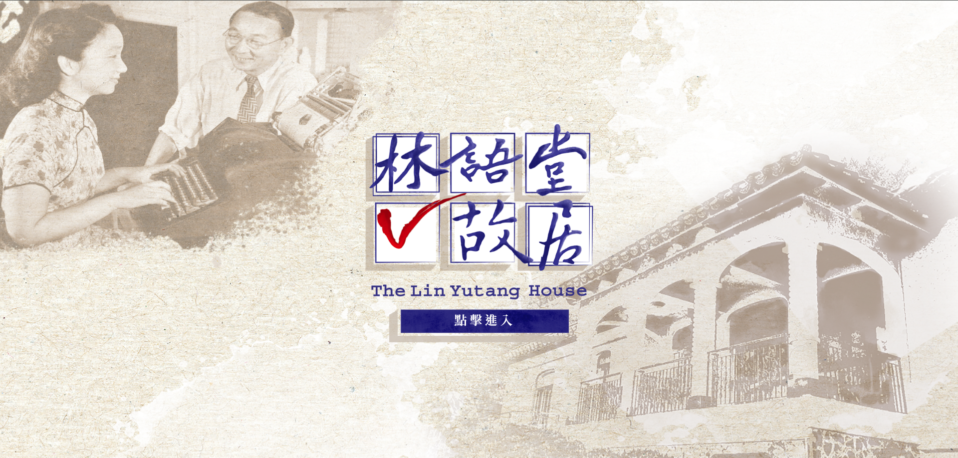 「林語堂故居」座落陽明山腰,興建於民國五十五年,由語堂先生親自設計,是先生生前最後十年定居台灣的住所。本建築是以中國四合院的架構模式,結合西班牙式的設計取向,兼具東、西方風格,融合了現代感與古典美。藍色的琉璃瓦搭配白色的粉牆,其上嵌著深紫色的圓角窗櫺,意境典雅精緻。從西式拱門走進,穿過迴廊,可見透天中庭,西班牙式螺旋廊柱被和煦的陽光輕輕地拉長身影。