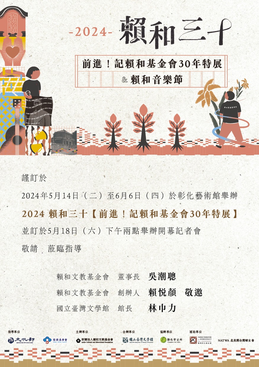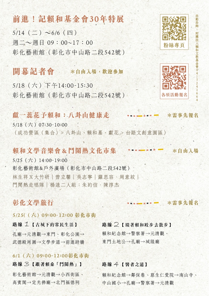 誠摯邀請您2024年5月18(六)下午2:00蒞臨彰化藝術館,和我們一起「尋找賴和」,「遇見賴和」,祝賴和130歲生日快樂!