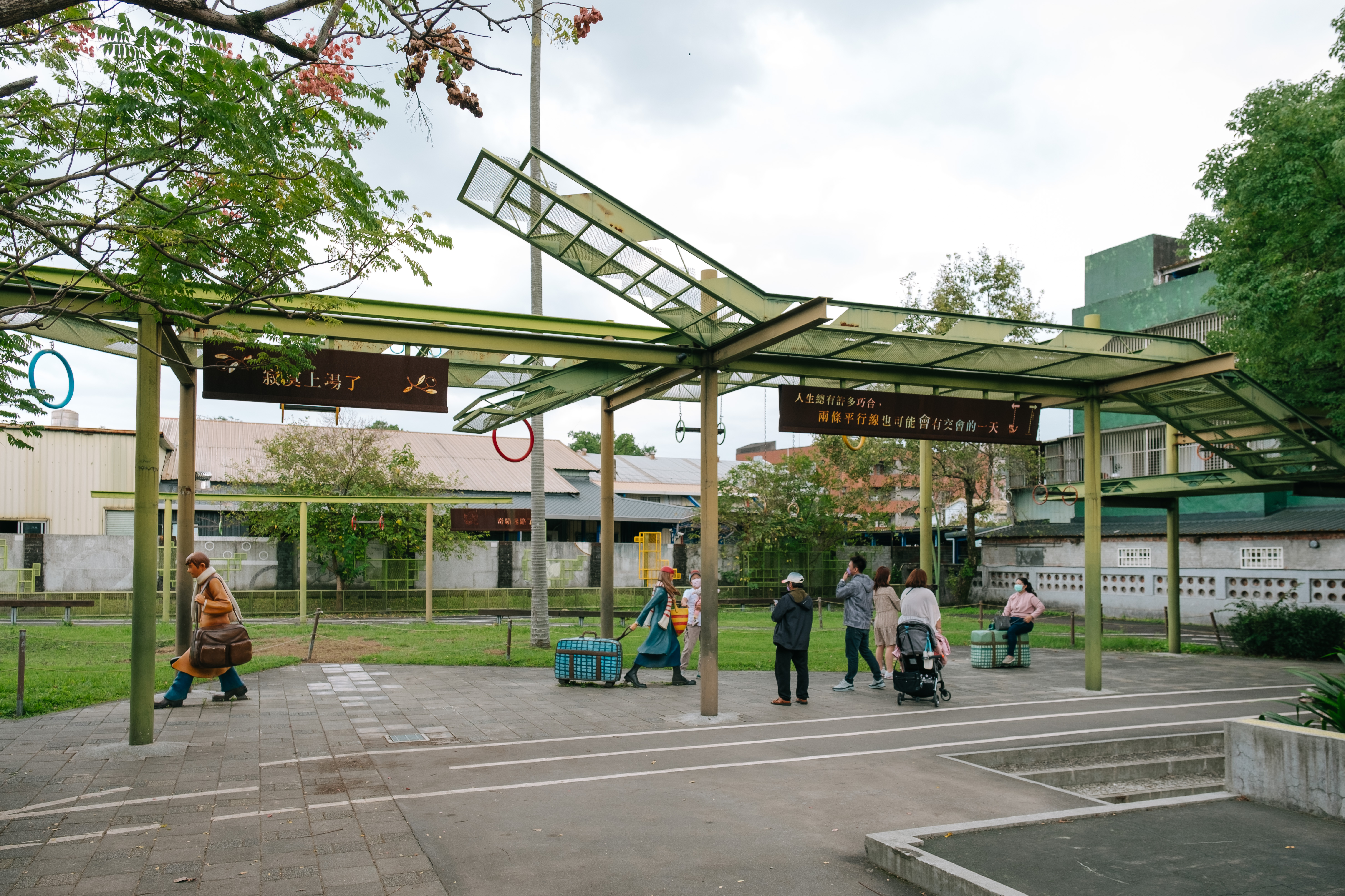 宜蘭火車站出口左側舊鐵道倉庫修復後的開放空間