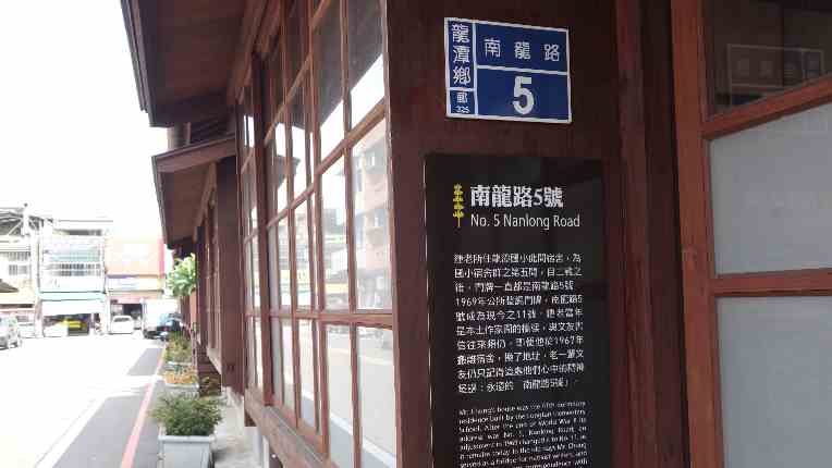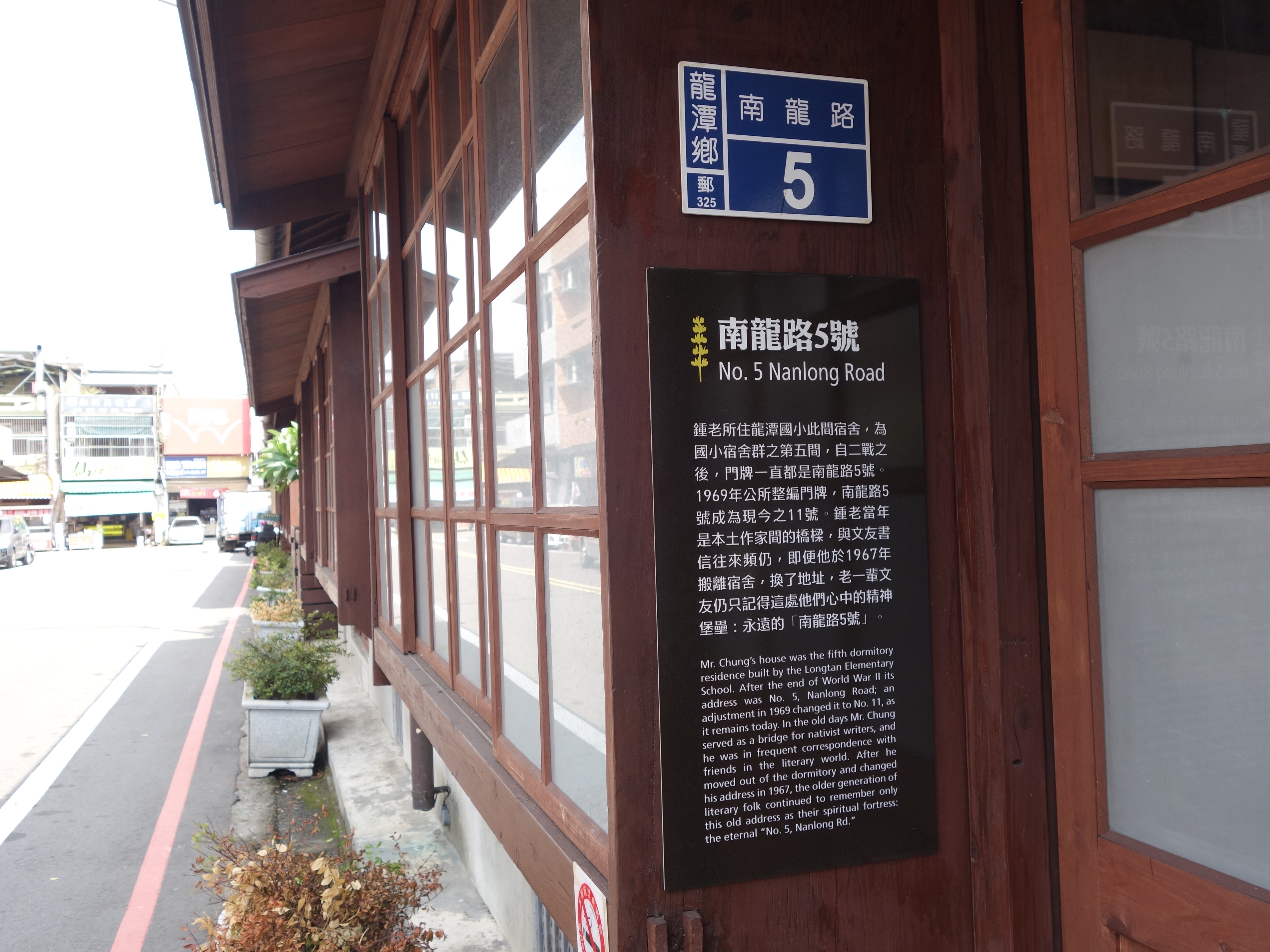 最後一站來到位於龍潭國小右側的鍾肇政文學生活園區,這是一排古樸的木造日式宿舍,其中一間老房子掛著「南龍路5號」門牌,就是人稱「臺灣文學之母」的鍾肇政他住了十一年的地方。當時來拜訪他文壇學友們絡繹不絕,這裡幾乎就等同於本省人的文學基地。