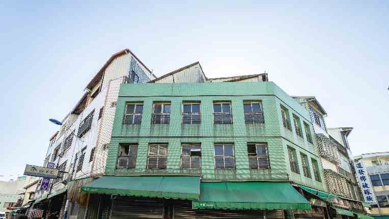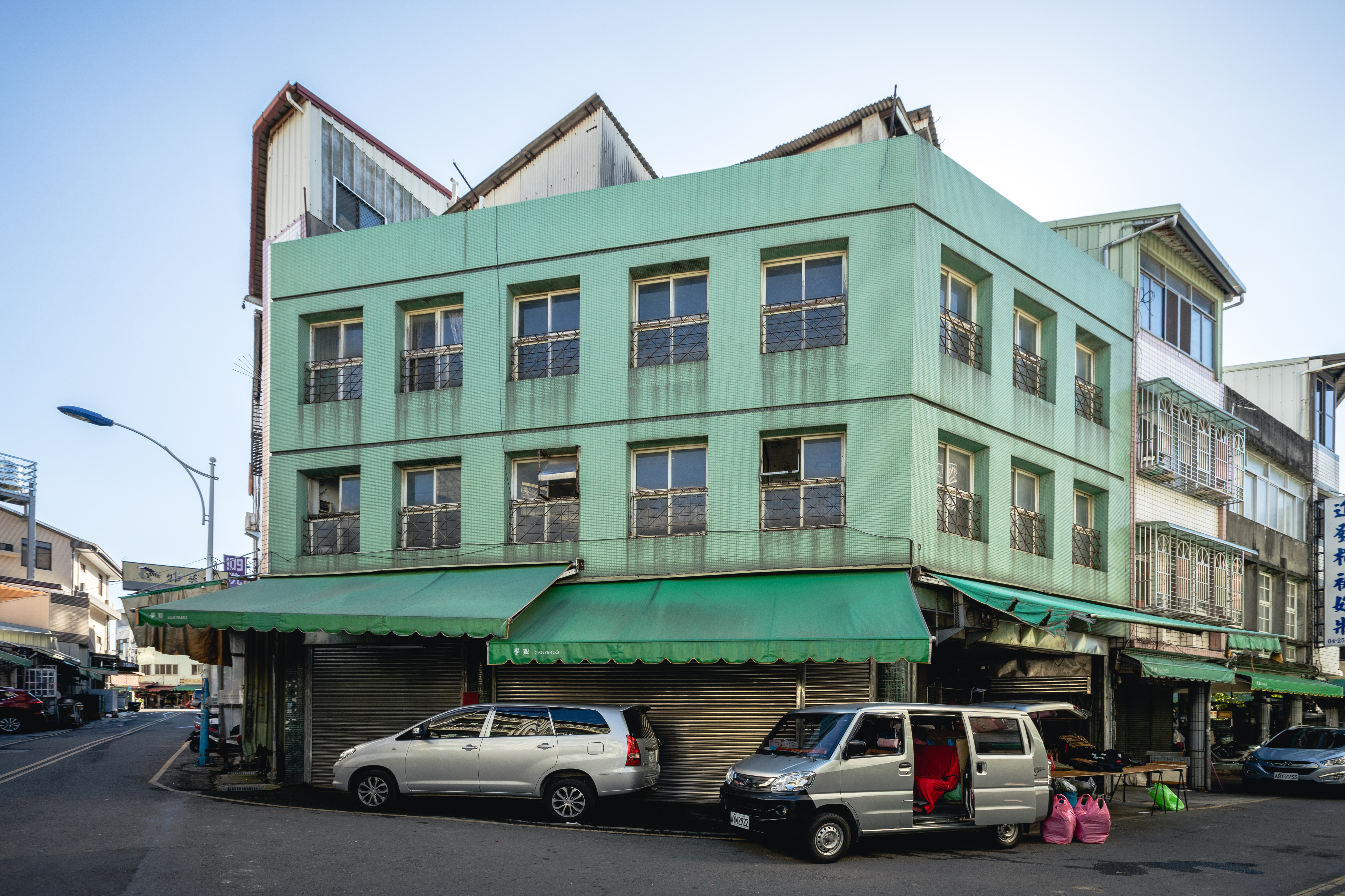這是詹冰開設的藥局,據在地耆老的說法,此棟在市場內的綠色的磁磚外牆至今無改。