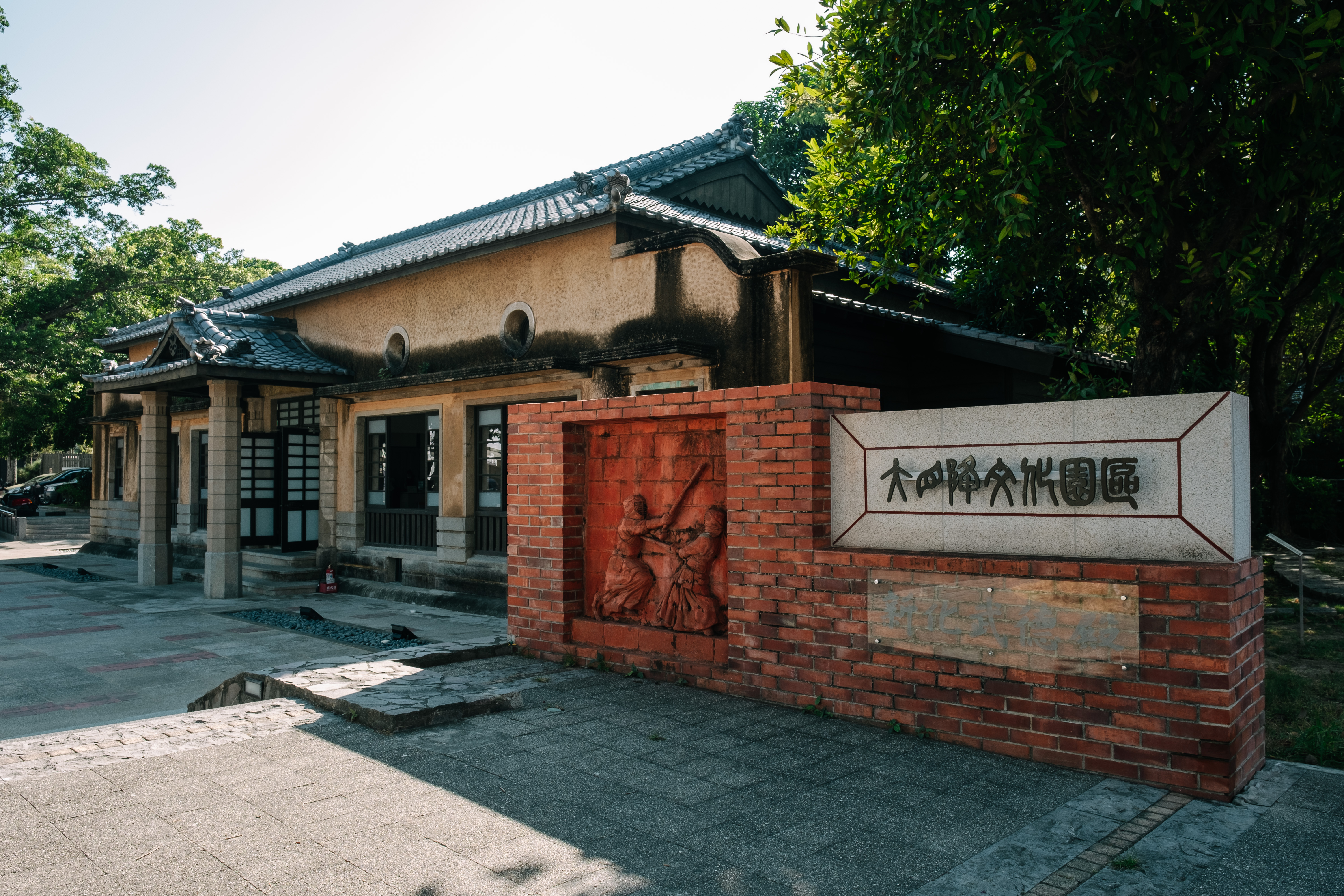 武德殿旁邊還有一排日式宿舍群,木造的老建築被改建成大目降故事館,部份為文創商店,宿舍群的對面還有大目降廣場,假日還會舉辦各種活動,是散步休閒的好去處。