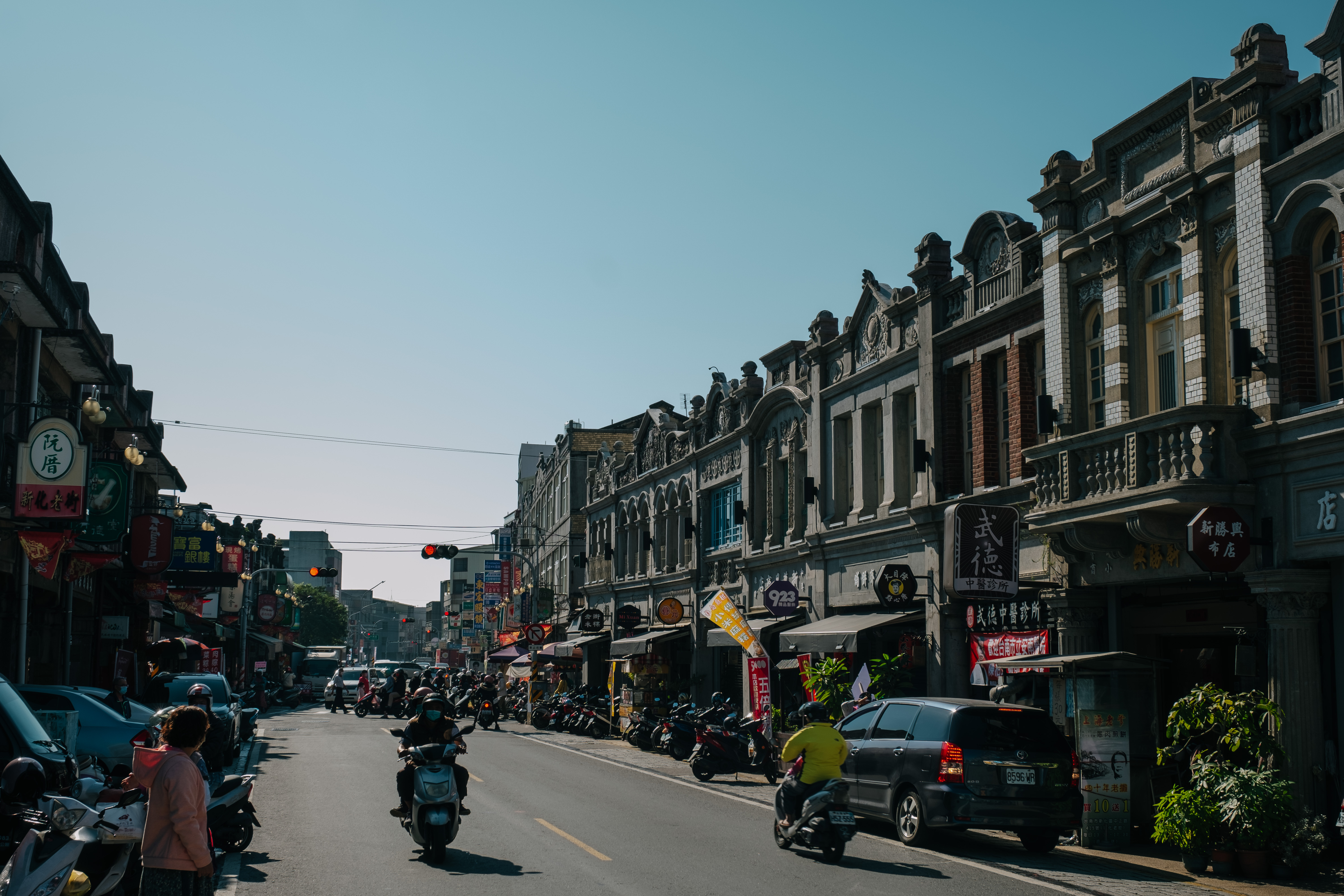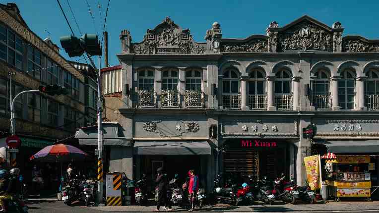 老街上以米店、布莊、餅鋪、醫院、藥房等民生必需店家為主,舊時代的交通痕跡與街區繁榮景象,在灰色的洗石子牆面下保留著。慢慢走在街上,米店、餅舖的香氣仍在,也別錯過了令人食指大動的傳統小吃。