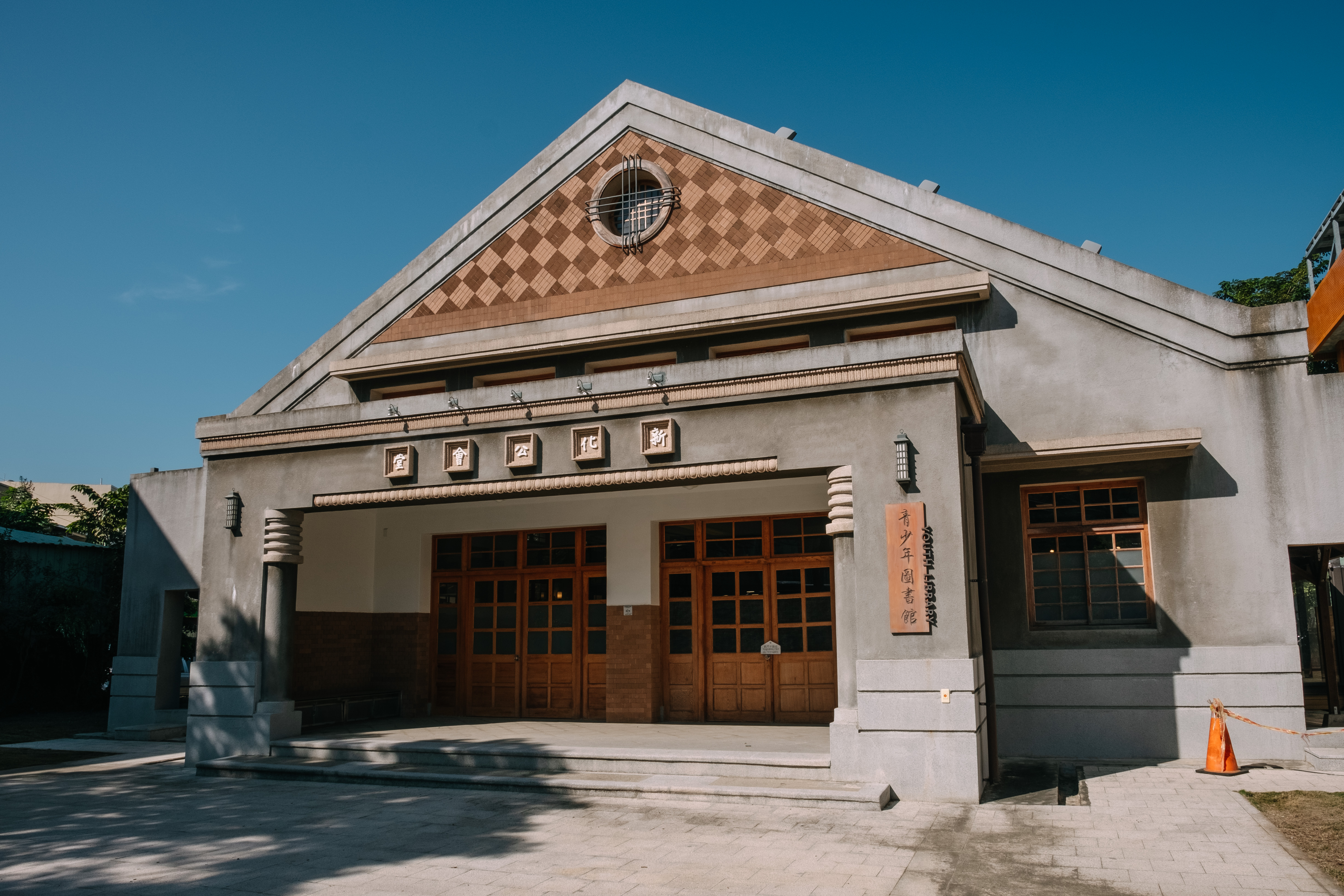 2018年整修完成的新化區圖書館青少年分館,前身為新化郡公會堂。落成於1936年,提供一般民眾集會、婚喪喜慶或藝文活動的用途。Art Deco的外觀風格,與新化老街上華麗街屋相比,也毫不遜色。新化郡公學校(楊逵母校)的畢業典禮也在此舉行。