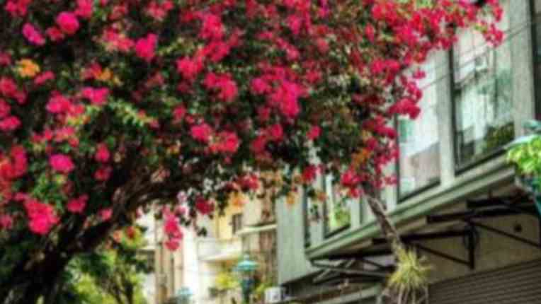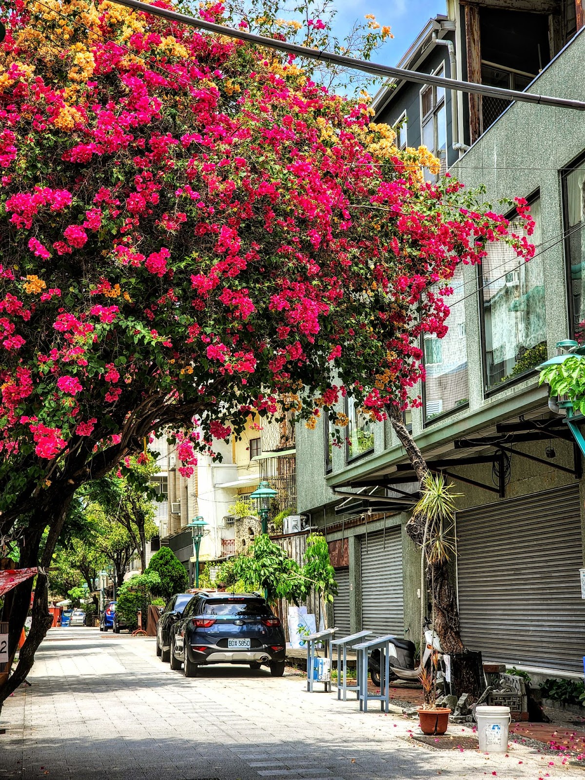 府中街靠近開山路的街景,這裡經常有繁花盛開,非常美麗。