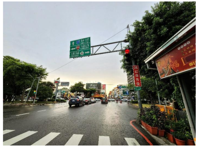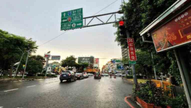 良皇宮附近街景圖,左前方是保安路,美味的小吃都在這條路上。
