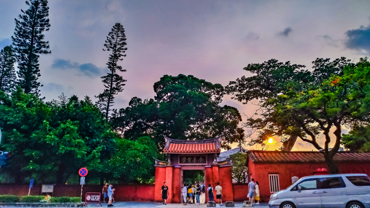 臺南孔子廟是臺灣第一座孔廟,建於1665年,為臺灣最早的文廟,時稱先師聖廟。清領初期是全臺童生唯一入學之所,因此稱「全臺首學」。清代前後多次整修並增建。乾隆四十二年(1777)臺灣知府蔣元樞大規模整修,並增建泮宮石坊,如今規制大致成形。日治初期曾充為近衛師團營舍病院,1898年在此設立臺南(第一)公學校(今南大附小)。大正六年(1917)動工整修,破敗的朱子祠、櫺星門、明倫堂後的文昌祠等則不再復建。昭和9年(1934)因拓寬今南門路,泮宮石坊被往東移而從孔廟的入口轉而變為柱仔行街(府中街)的入口。