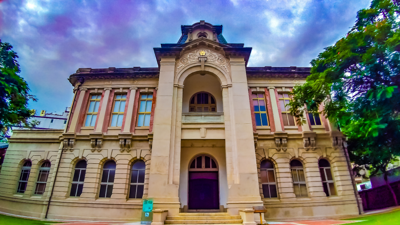 公會堂建於1910年,由矢田貝季陸設計,當時稱臺南公館,1923年改稱臺南公會堂,是當時市民重要的集會場所,也兼具教化百姓的功能。臺灣文化協會成立後,蔡培火、連橫等人亦在此處演講。其建築特色為閩洋混搭,兩翼女兒牆因此地原為道光年間鹽商吳尚新的紫春園(今稱吳園),故加入了閩式的綠釉花磚,為西洋式建築增添了幾分本土色彩。