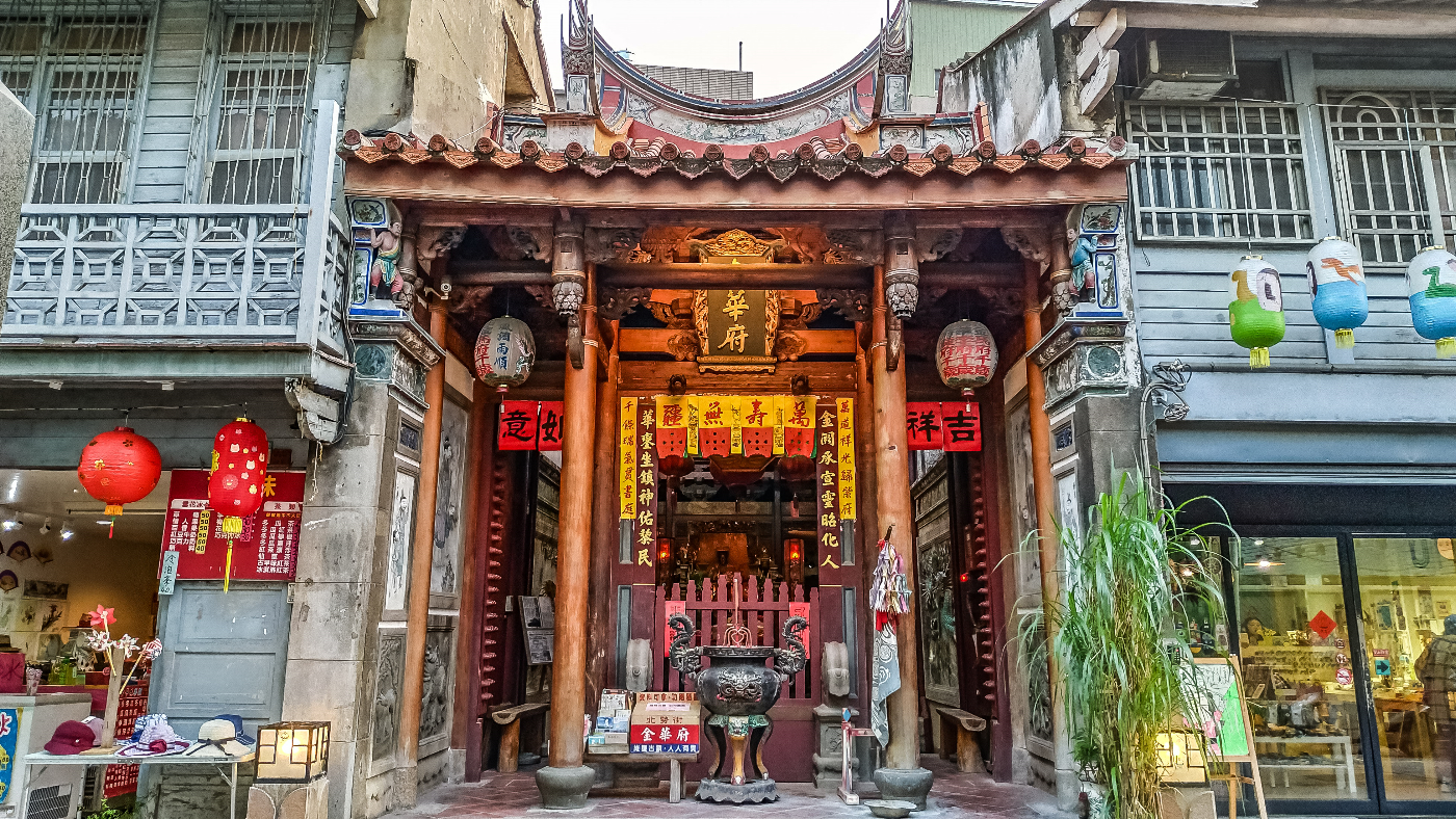 金華府座落於北勢街,由泉州晉江的許姓族人創建於道光十年(1830),主祀關公,配祀馬、李、黃府千歲,是廟宇中少數以府為名者。門上有144個門釘,超越了明制帝王門扉81顆的規則。中庭龍邊上方牆壁為石灰岩天然溶蝕造成,為本廟的一大特色。廟門上有一自創廟至今的百年心形銅鎖,有著百年同心的含意。