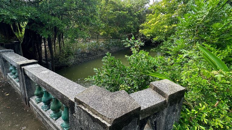 既有橋,則此地必有溪流蜿蜒。張禎祥時常駐足此處,也為此地賦了不少詩句。〈豁然橋上即景〉即是其一,描述他立於橋上張望池水,由溪流中的倒影體會到如海市蜃樓般的奇觀。